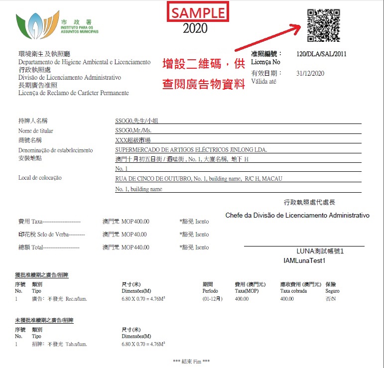 市政署持續優化廣告准照之行政手續,於明年一月起正式推出“長期廣告及招牌准照-網上續期”服務,方便持牌人不受辦公時間限制且無須親臨服務中心便可透過網上系統申辦准照續期,並可自行列印相關之續期准照。