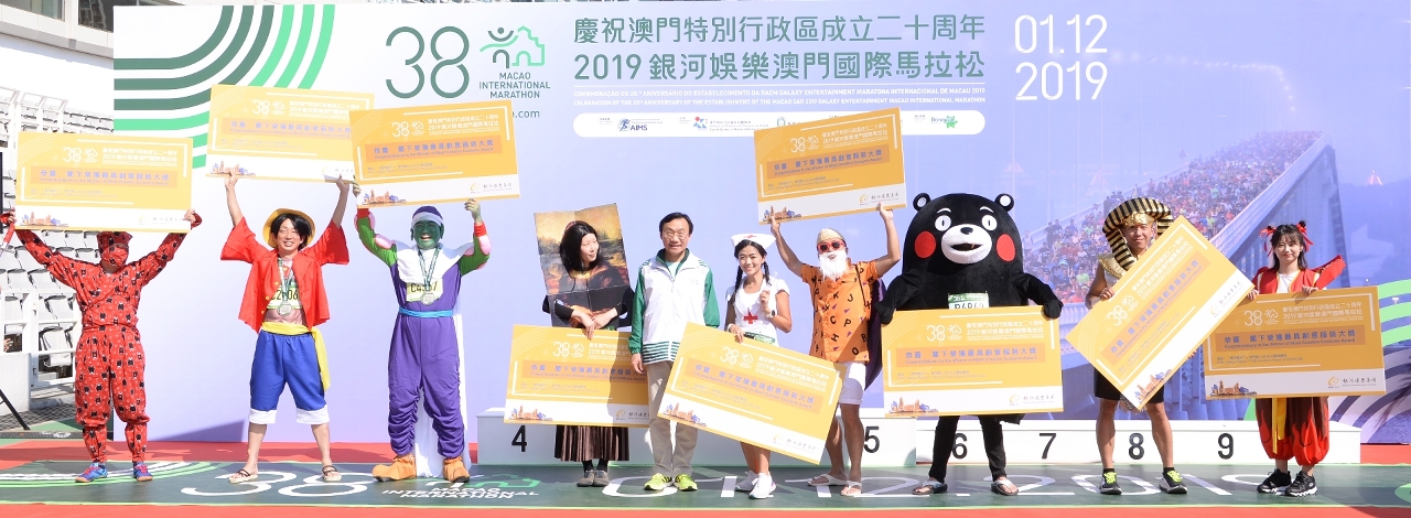 為增添賽事元素,主辦單位今年繼續舉辦「最具創意服裝大奬」及「上載靚相,參加抽獎」活動。其中「最具創意服裝大奬」活動吸引了眾多參賽者悉心打扮,而獲選的參賽者已於賽後在現場獲頒發獎項。另外,馬拉松參賽者以及非參賽人士可於今日(1日)內透過「澳門馬拉松」手機應用程式參加「上載靚相,參加抽獎」活動,參加者有機會贏得豐富獎品,包括汽車、酒店住宿、餐飲禮券、水療護理療程及電影禮券等,得獎結果將於12月7日在賽事官方網頁(www.macaomarathon.com)以及「澳門馬拉松」手機應用程式內公佈。