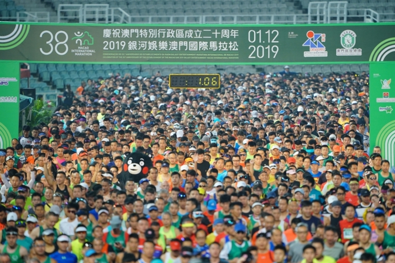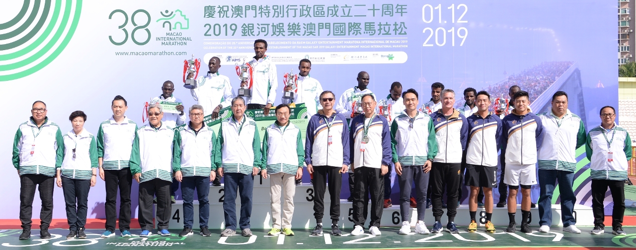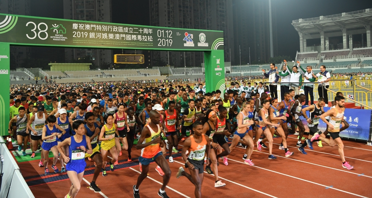 由體育局及澳門田徑總會主辦,銀河娛樂集團冠名贊助的「慶祝澳門特別行政區成立二十周年 – 2019銀河娛樂澳門國際馬拉松」今日(1日)於奧林匹克體育中心運動場舉行,賽事吸引52個國家地區共12,000名運動員角逐,由社會文化司司長譚俊榮等主持起步禮。矚目的馬拉松男、女子全場組別最終分別由埃塞俄比亞的阿比比與肯尼亞的謝妮育奪冠。而陳楷元與許朗則贏得馬拉松澳門運動員男、女子組的桂冠。