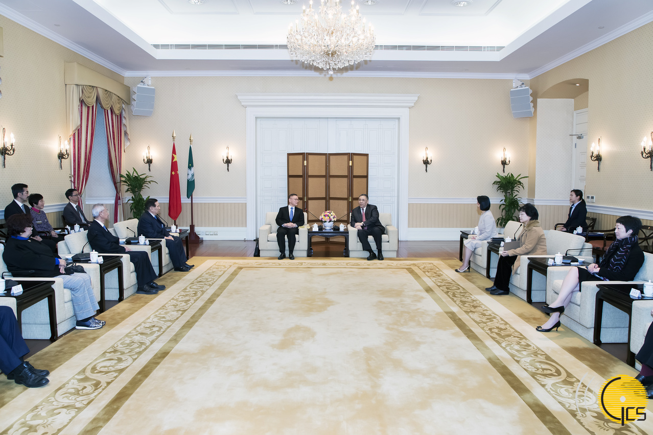 行政長官辦公室主任柯嵐、同善堂值理會副主席劉藝良、監事長賀定一、副監事長馬有友及多名值理參加會見。