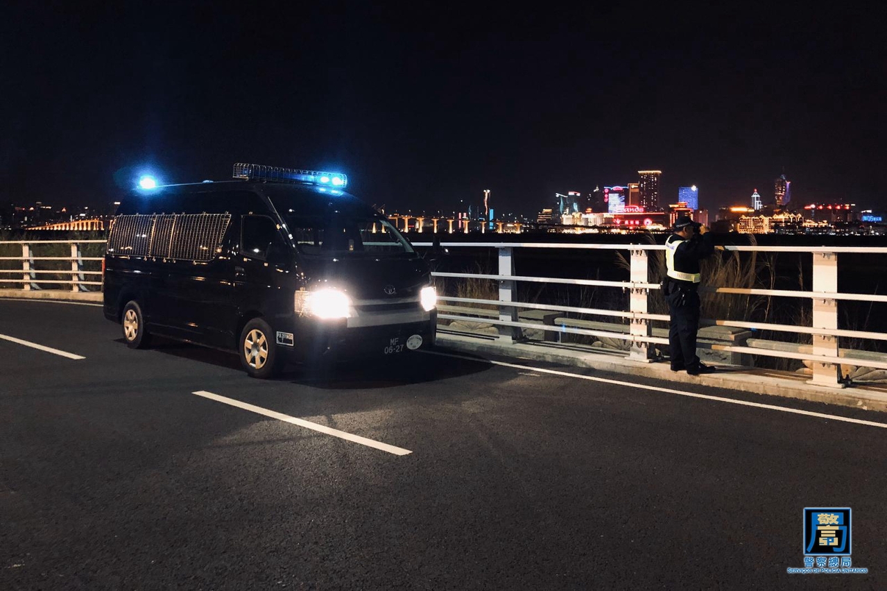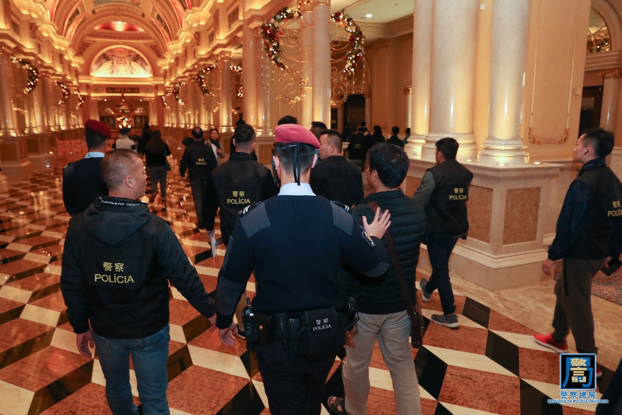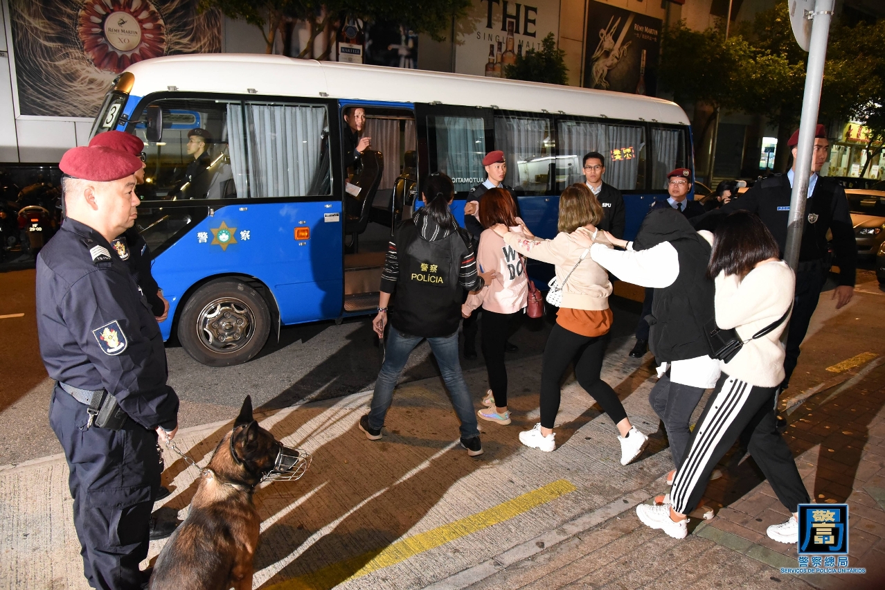 警察總局於昨晚(3日) 11時至今日(4日)早上6時,統籌治安警察局及司法警察局,並聯同澳門海關展開“雷霆2019”第二階段大型聯合警務行動,出動超過310名警務人員及關員,6支警犬小隊,徹夜巡查了澳門和路氹多間娛樂場及周邊區域、夜店、酒吧等場所。同時海關亦派出5艘巡邏船及快艇,加強沿岸及海上的截查,打擊偷渡活動。