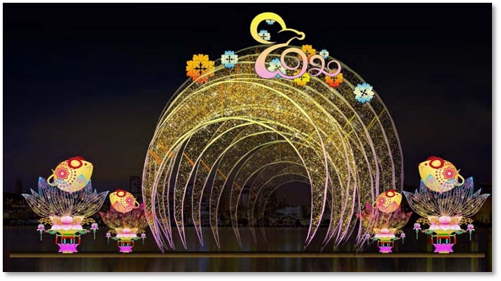 市政署在全澳各區的主要街道、廣場、公園、圓形地等放置富有農曆新年氣氛的燈飾,佈置地點共有七十八個,包括澳門半島五十五個、氹仔十五個及路環八個。燈飾佈置以「金鼠迎春賀新禧」為主題,除了傳統的大型宮燈外,還有各式金鼠造型的大型燈組、小型吊掛燈飾以及小型金鼠座地燈飾。議事亭前地將設置一座以綠牆及各式新春元素為背景的大型舞台,以及充滿農曆新年節日氣氛的大型燈光隧道。透過各式各樣,分佈於全澳各區的賀歲燈飾,讓市民及遊客感受濃厚的農曆新年節日氣氛。