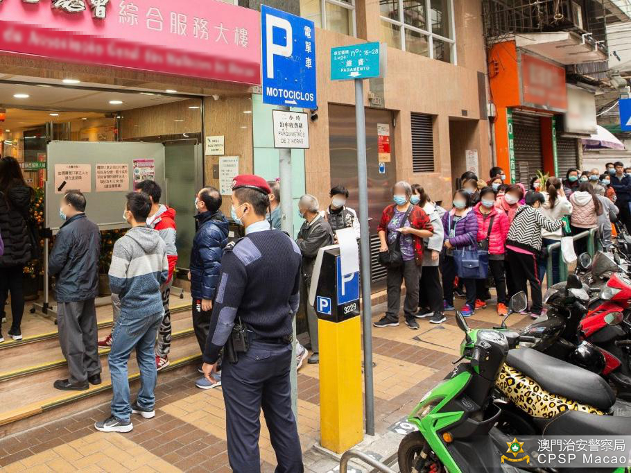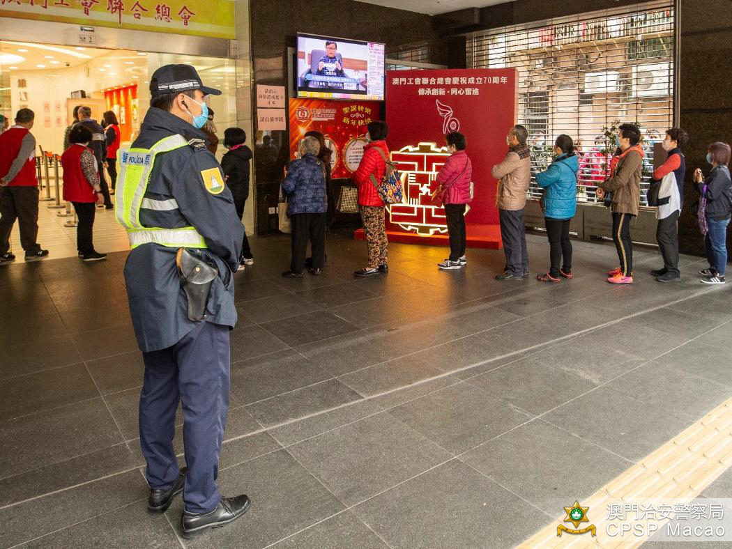 第二輪的保障口罩供應澳門市民計劃已於2月2日開始,本澳的衛生中心、政府協議藥房,以及街總、工聯、婦聯轄下的多個服務點也提供口罩,治安警察局亦加派人員在上述多個地點,留意公眾輪候情況及維持秩序,第二輪計劃開始首日多個地點均出現排隊等候情況,整體的輪候秩序良好。