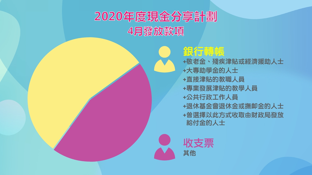 “2020年度現金分享計劃”今(1)日起發放,分別向澳門永久性居民及非永久性居民派發澳門元10,000元及澳門元6,000元。市民可透過以下方式,查閱/查詢現金分享的最新資訊: