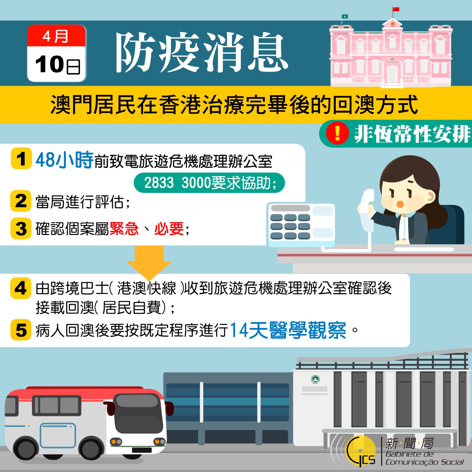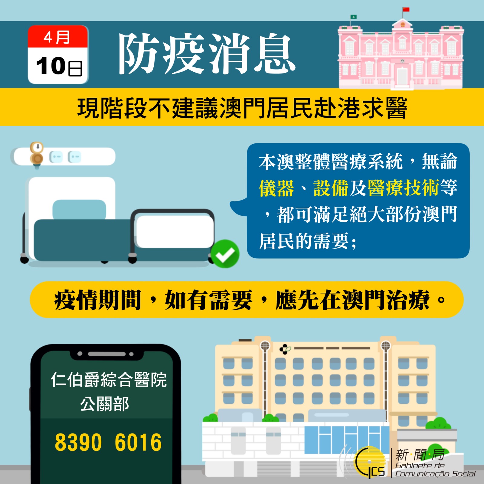 本澳無新增新型冠狀病毒肺炎確診個案 應變協調中心呼籲市民盡量使用本澳醫療系統