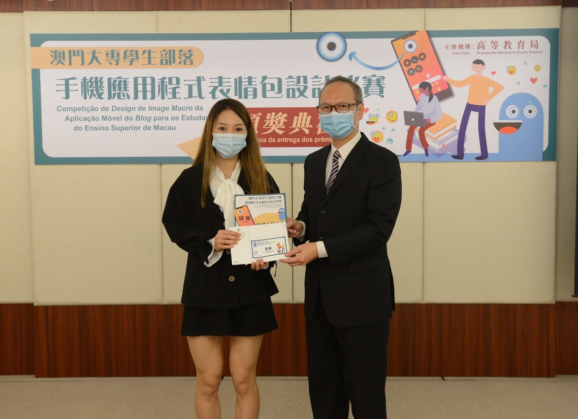 高等教育局今日(11日)舉行“第十六屆澳門高等院校學生寫作比賽”及“澳門大專學生部落手機應用程式表情包設計比賽”頒獎禮,向獲獎學生頒發獎狀和獎金,並勉勵學生繼續發揮潛能,積極參加各類課餘活動,豐富學習經驗。
