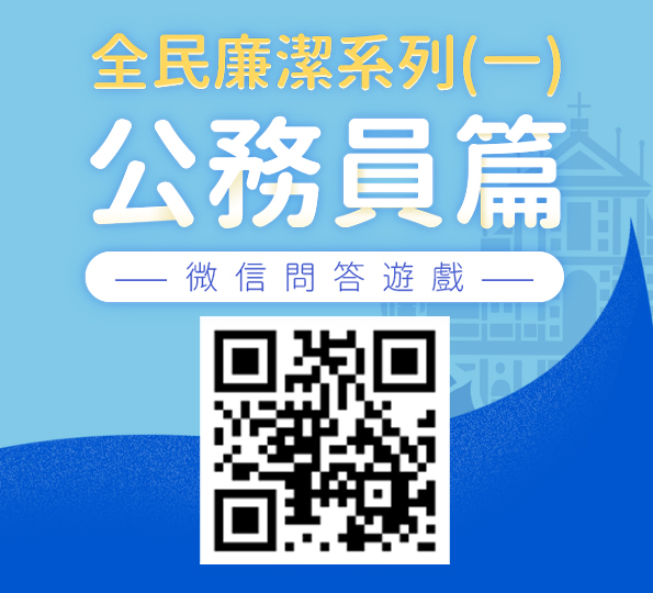 廉政公署舉辦“全民廉潔系列(一)公務員篇”微信有獎問答遊戲,加深市民對《刑法典》中“公務員”和“等同於公務員”概念的認識,豐富市民廉潔防貪的知識。