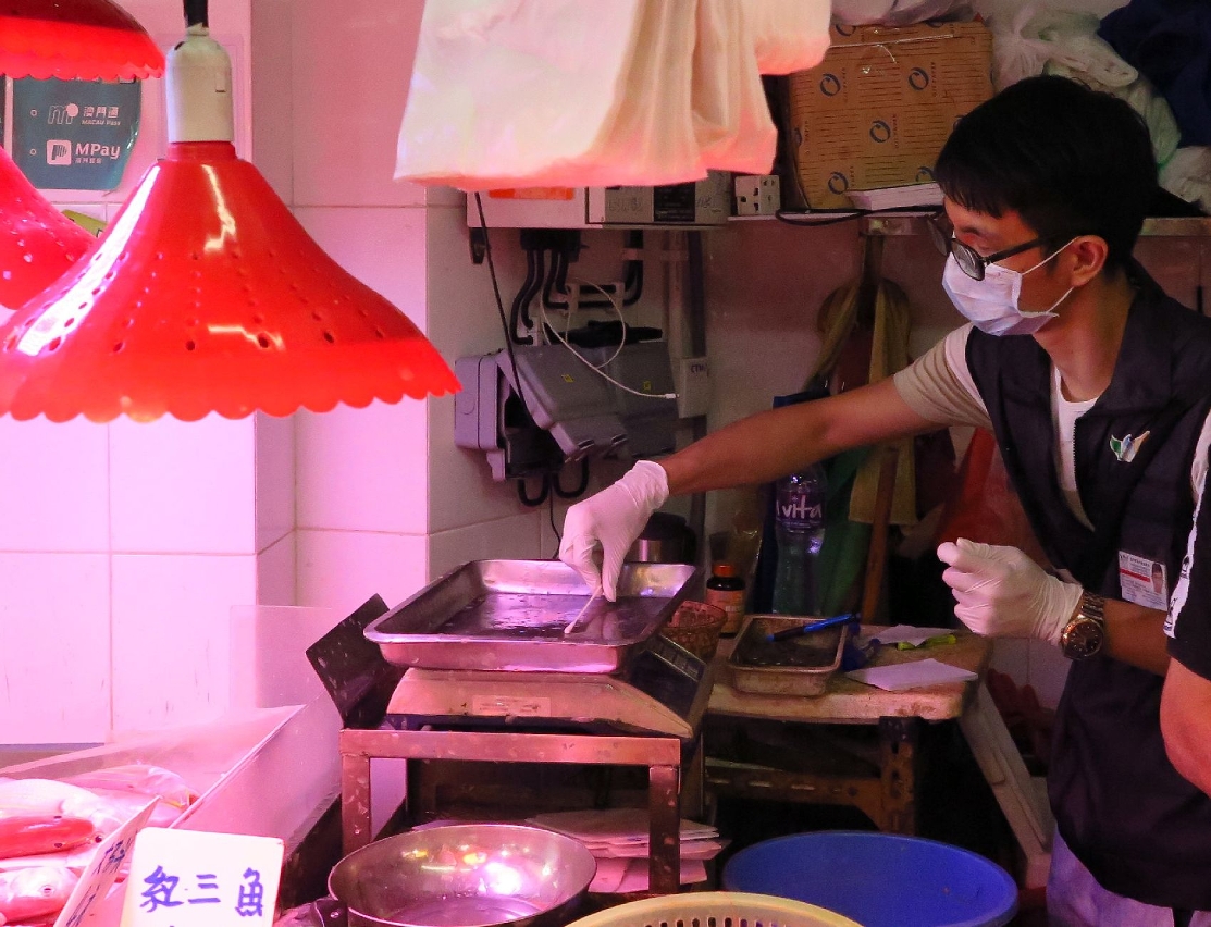 同時,市政署還對青洲新批發市場、各市政街市內的工作枱、刀具、砧板、工作人員雙手、包裝物料、使用的相關設備等採集環境樣本,進行病毒核酸檢測。昨日在新批發市場、紅街市和沙梨頭街市抽取的二十個環境樣本,以及在入口檢疫點抽取的二十個冷凍禽畜肉及水產樣本,全部新冠病毒核酸檢測結果皆為陰性。