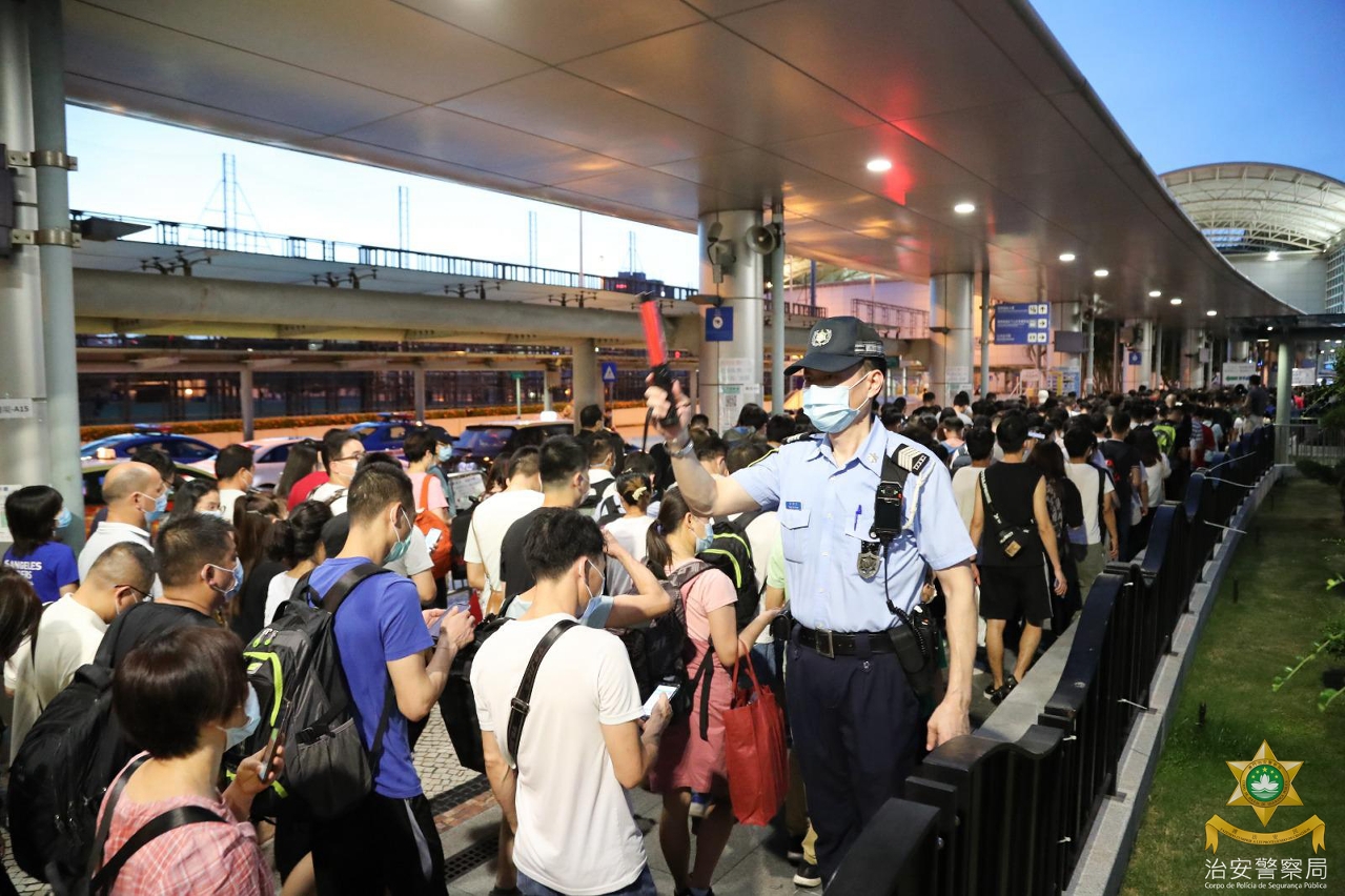 為應對關閘口岸的離境高峰,治安警察局已加派警力於關閘廣場一帶維持秩序,疏導人潮,並因應實際情況採取人潮管制措施,通關人士應遵守現場警員指示有序行進,耐心等候,以確保良好的通關秩序和效率。同時,治安警察局已安排專車,以分流關閘口岸部分離境人士到港珠澳大橋出入境事務站離境。警方呼籲通關人士應留意電視、電台、手機即時新聞推送及使用治安警察局的「出入境事務站實時資訊平台」以掌握各口岸的實時情況,避開出入境高峰,選擇人流較少的時間及口岸通關,錯峰出行。同時,通關人士務必在出行前已經做好「澳門健康碼」及「粵康碼通關憑證」的轉換操作,確保通關暢順。