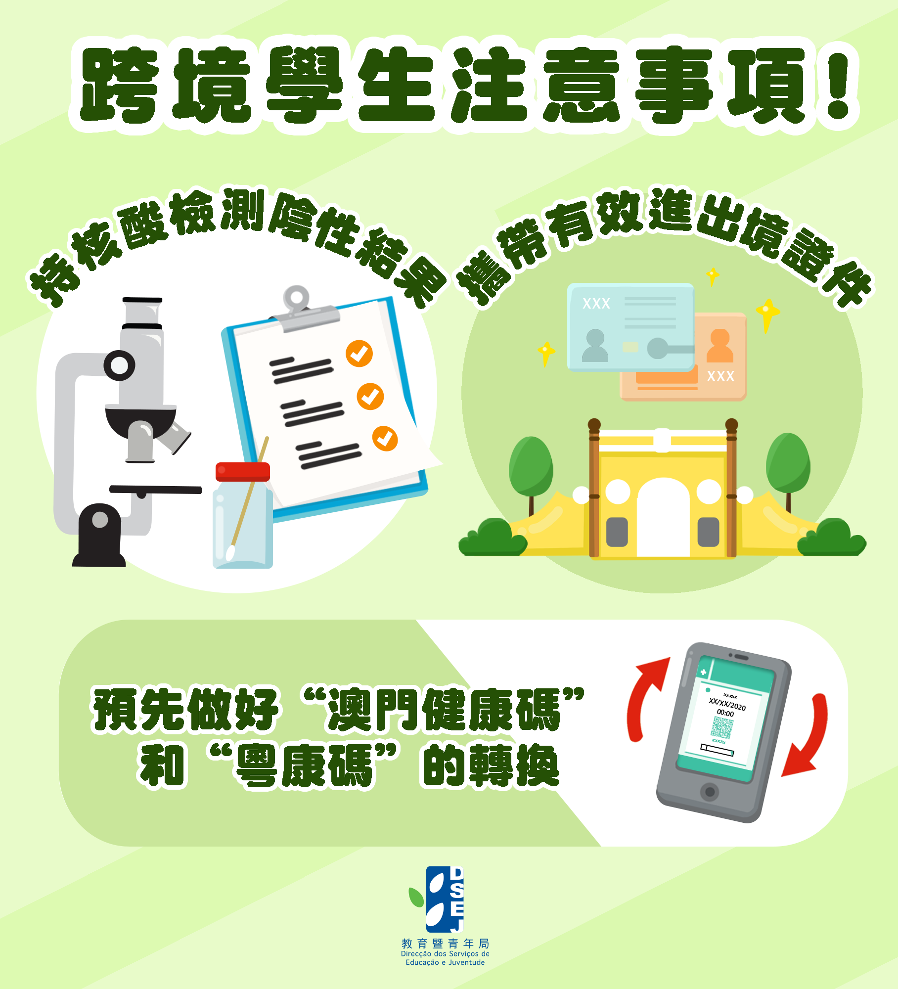 新學年即將到來,本澳幼兒、小學、中學及特殊教育學校將於9月初陸續開學,並會實施錯峰上學安排。教育暨青年局呼籲家長關注特區政府的防疫措施,並密切留意交通和天氣的情況,以及子女的身體狀況,教導子女防疫知識及保持良好衛生習慣的重要;跨境學生更須在開學前留意出入境政策,並適時完成核酸檢測,為開學做好準備。為確保新學年順利開學,教青局會派員於學校開課首日到校實地瞭解情況。