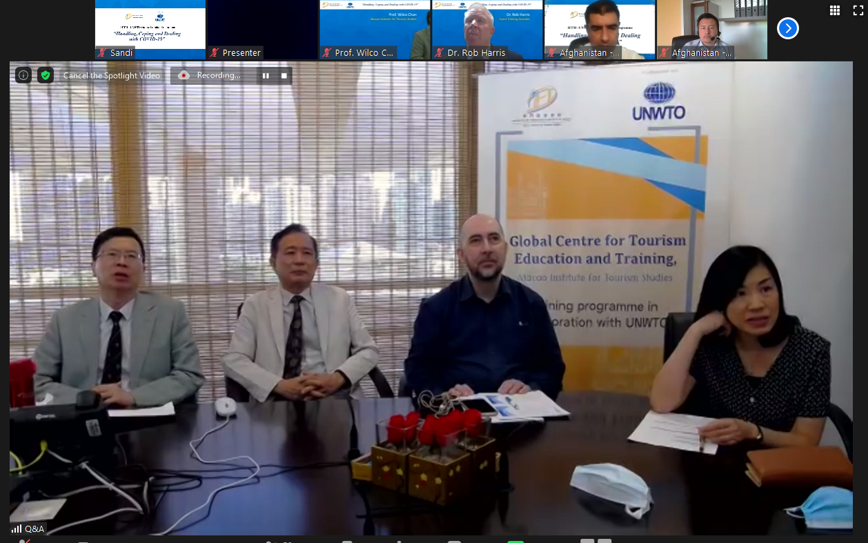 澳門旅遊學院世界旅遊教育及培訓中心與聯合國世界旅遊組織合作舉辦了首個網上培訓課程,課程以「新型冠狀病毒的應付、應對及處理」為主題,講述在新型冠狀病毒大流行的情況下,在可持續旅遊政策與規劃、目的地管理、 營銷策略及人力資源管理四方面應對上的觀點。課程於2020年7月下旬舉行,以代替原定學員來澳學習8天的第9屆澳門旅遊學院世界旅遊教育及培訓中心與聯合國世界旅遊組織合辦的培訓課程。