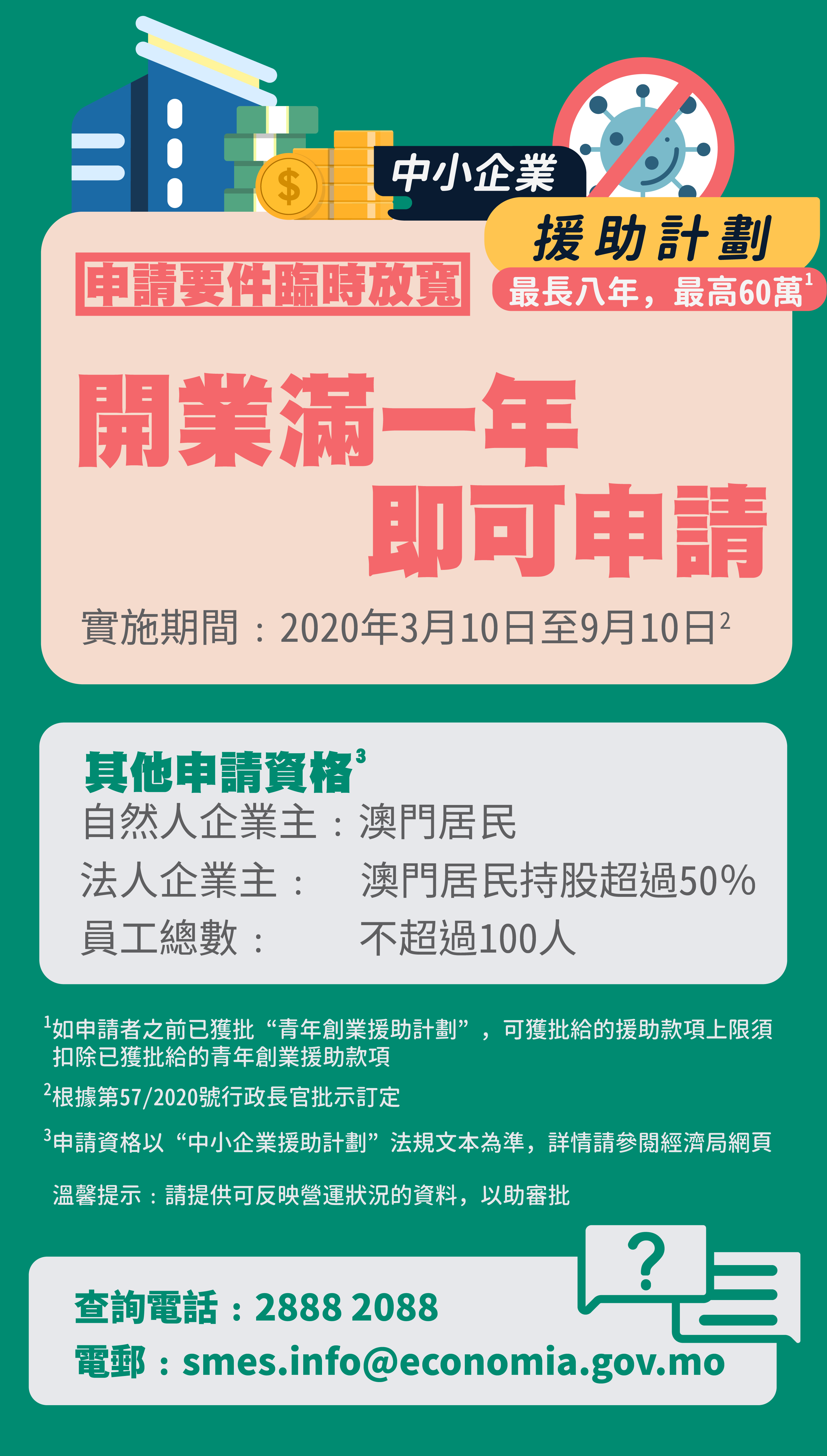 有需要申請“中小企業援助計劃”或“調整還款”措施的中小企業,可瀏覽經濟局網頁(www.economia.gov.mo)瞭解詳情並及早提出申請。
