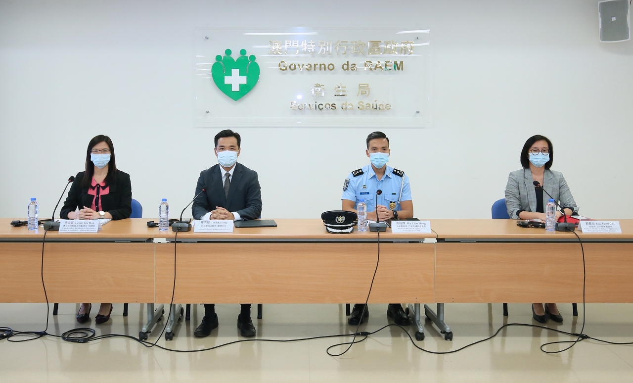 新型冠狀病毒感染應變協調中心(下稱應變協調中心)於今(24)日舉行例行記者會,仁伯爵綜合醫院羅奕龍醫務主任、治安警察局行動及通訊處馬超雄處長、旅遊局公共關係處劉鳳池處長、疾病預防控制中心傳染病防制暨疾病監測部梁亦好協調員共同會見傳媒。