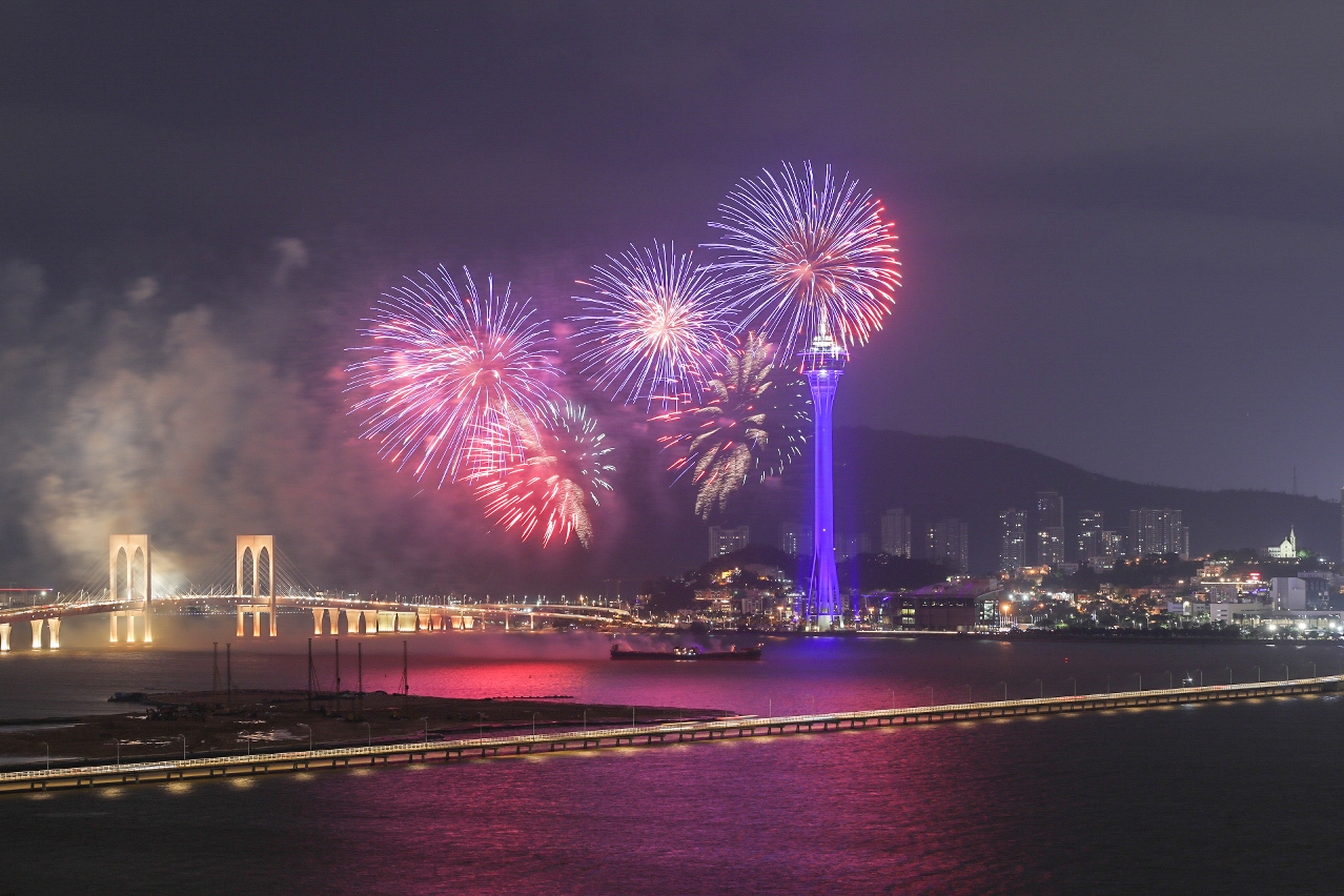 由澳門特別行政區政府旅遊局與珠海市橫琴新區管理委員會合辦的“月滿琴澳國慶煙花表演”於今(1日)晚在澳門旅遊塔對出海面上演,慶賀中華人民共和國成立71周年。