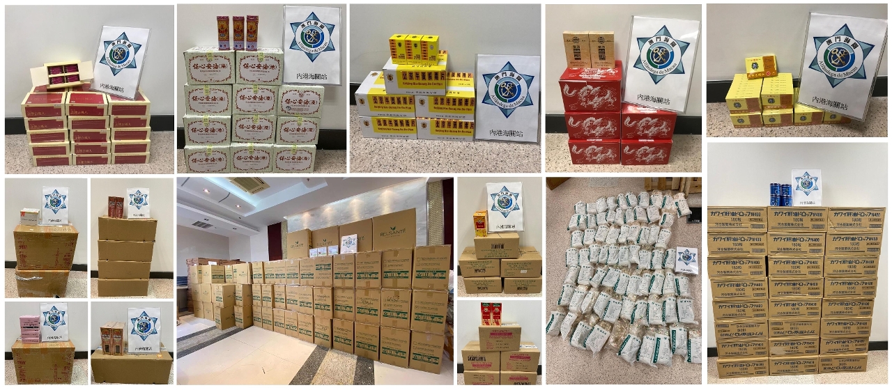 本月15日上午,海關再次透過風險管理系統的預警佈控,結合情報分析,鎖定調查目標,對內港碼頭一貨運公司申報進口的貨物進行嚴格檢查,期間發現一批沒有申報貨物,當中包括藥物、燕窩、奶粉及乾貨等,全數未依法申領准照或接受檢疫。有關物品混雜於一批已申報的食物、紅酒及電子產品中,企圖矇混過關。經點算緝獲貨物合共437箱,估值約1,500萬澳門元。