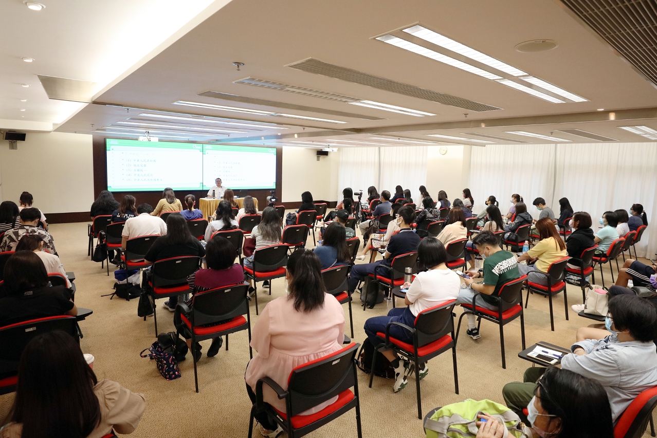 在培訓講座中,駱教授結合法律及社會實況,以生動、深入淺出的方式,向教師們講解作為澳門特區憲制基礎的《憲法》與《基本法》,彼此間的關聯性,以及中央與澳門特區之間的關係等,同時介紹了《維護國家安全法》的重要性及其立法意義,以及國旗、國徽、國歌的歷史由來、精神內涵及相關法律規定。此外,法務局亦安排法律人員講解了澳門特區的刑事法律制度、常見青少年犯罪行為及相關刑責等內容。