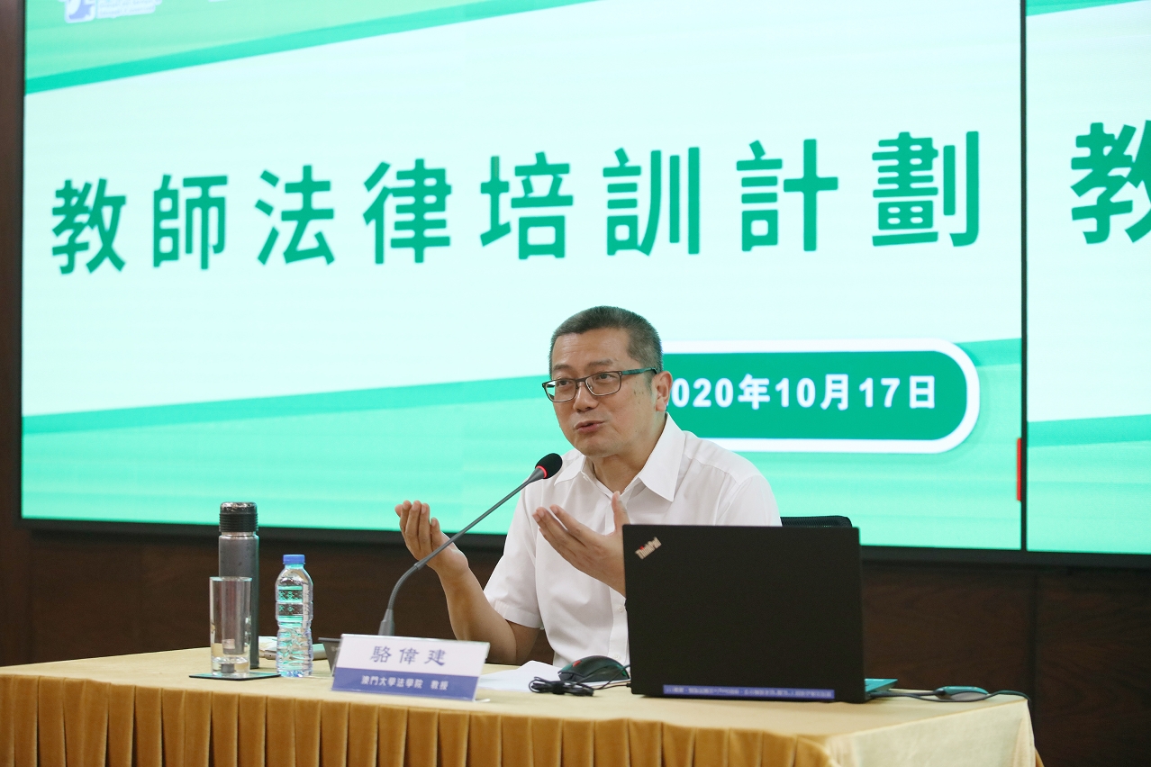 法務局與教育暨青年局合辦的“教師法律培訓計劃”活動已於10月17日圓滿結束。整個活動合共舉辦了四場講座,由澳門大學法學院駱偉建教授擔任主講嘉賓,240名本澳中、小學校教師參加了活動。