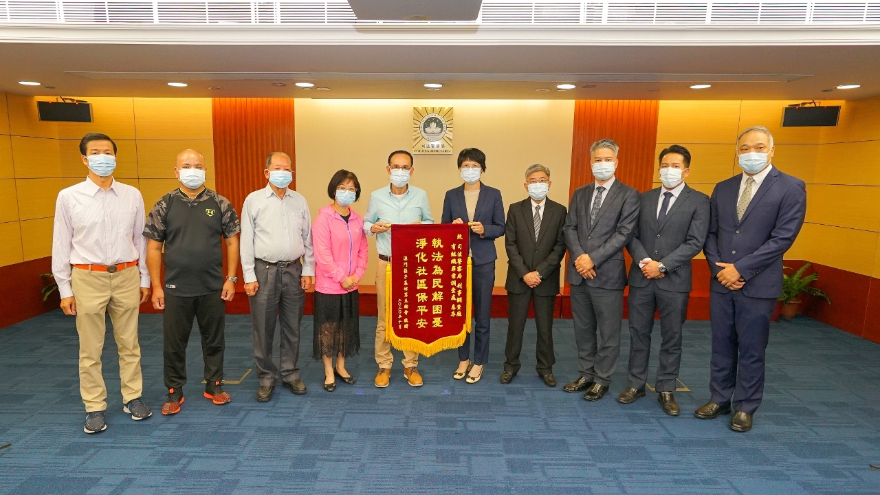 早前,司警局透過“司法警察局大廈防罪之友”的聯絡機制,接獲筷子基區居民反映,區內某屋苑附近的休憩區出現大規模聚賭情況,嚴重影響居民的正常生活,並有可能引發治安問題。司警局非常關注此事,立即派員跟進並持續到該區打擊非法聚賭活動,同時派員聯同坊會代表在區內進行相關防罪宣傳工作,採取打防結合的策略,有效淨化社區治安環境。鄭鑒康會長代表坊會向司警局致送錦旗,以表揚司警局及時回應居民對區內治安的訴求,並指出經警方持續執法,近期區內的治安環境有明顯改善。
