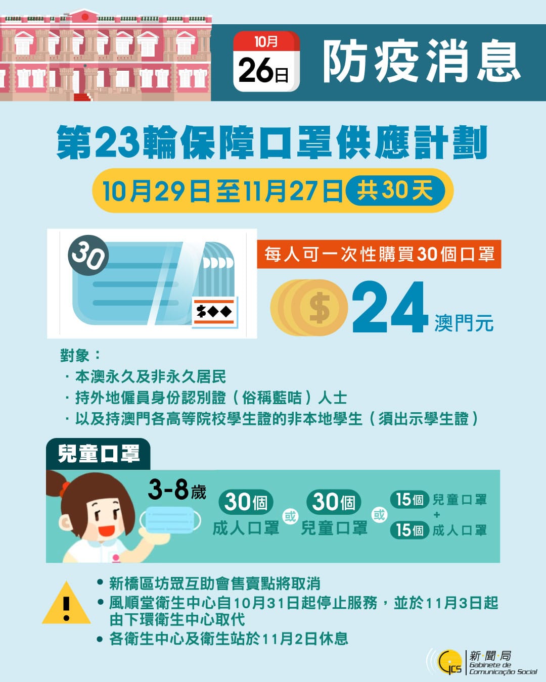 • 第23輪保障口罩供應澳門居民計劃