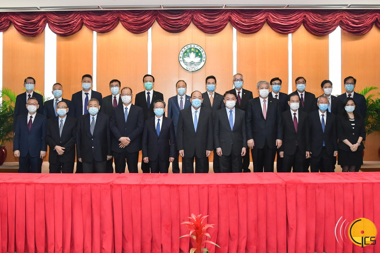 行政長官賀一誠今(27)日在政府總部會見澳門中華總商會理事長高開賢等領導層一行,就特區政府制訂2021年財政年度施政報告聽取意見及建議。