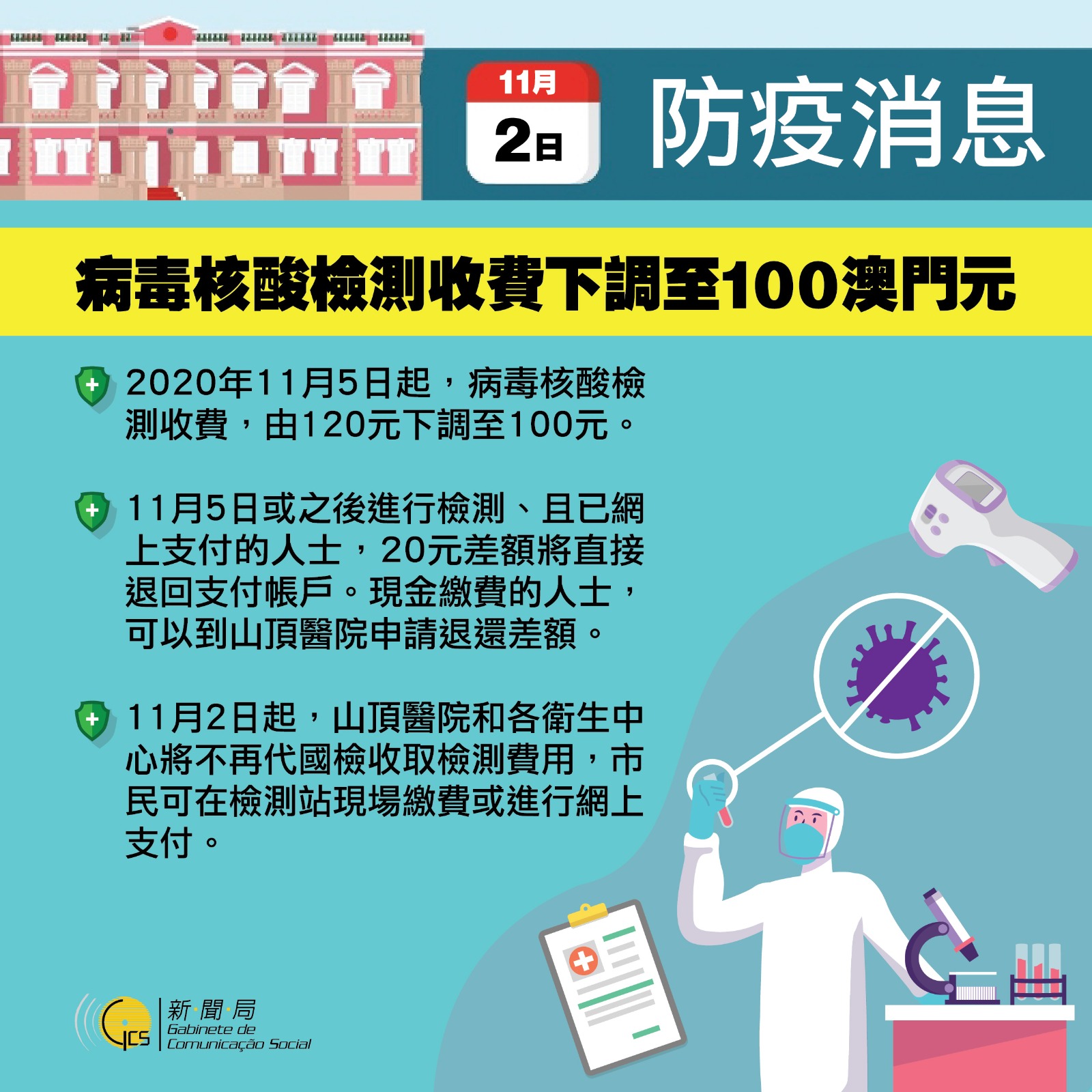 本澳連續218天無本地病例報告 周四起四個病毒核酸檢測站的檢測收費下調至一百元