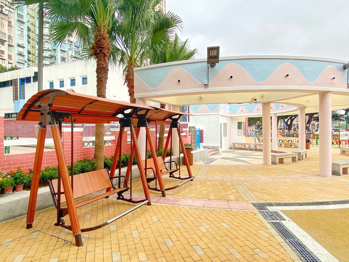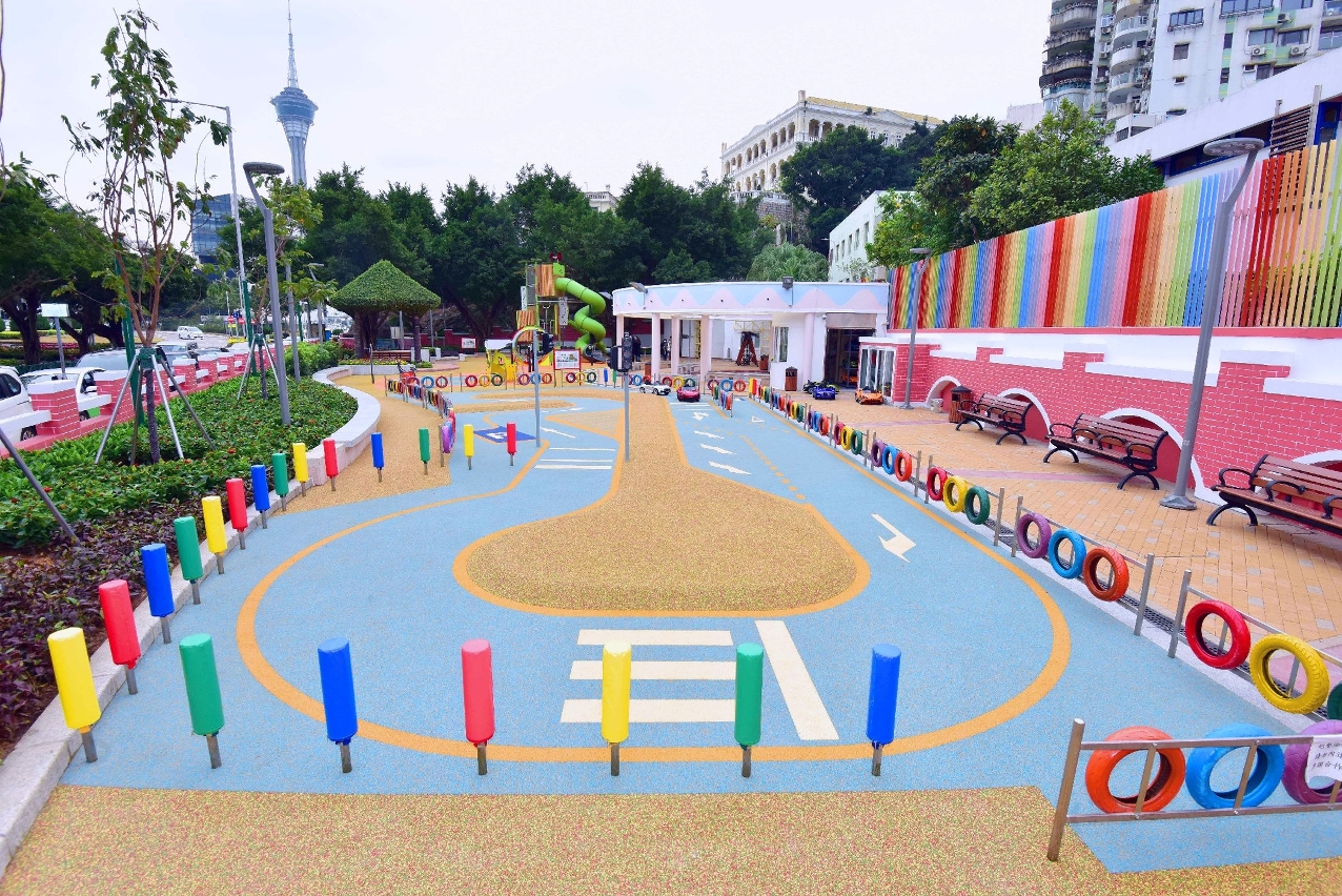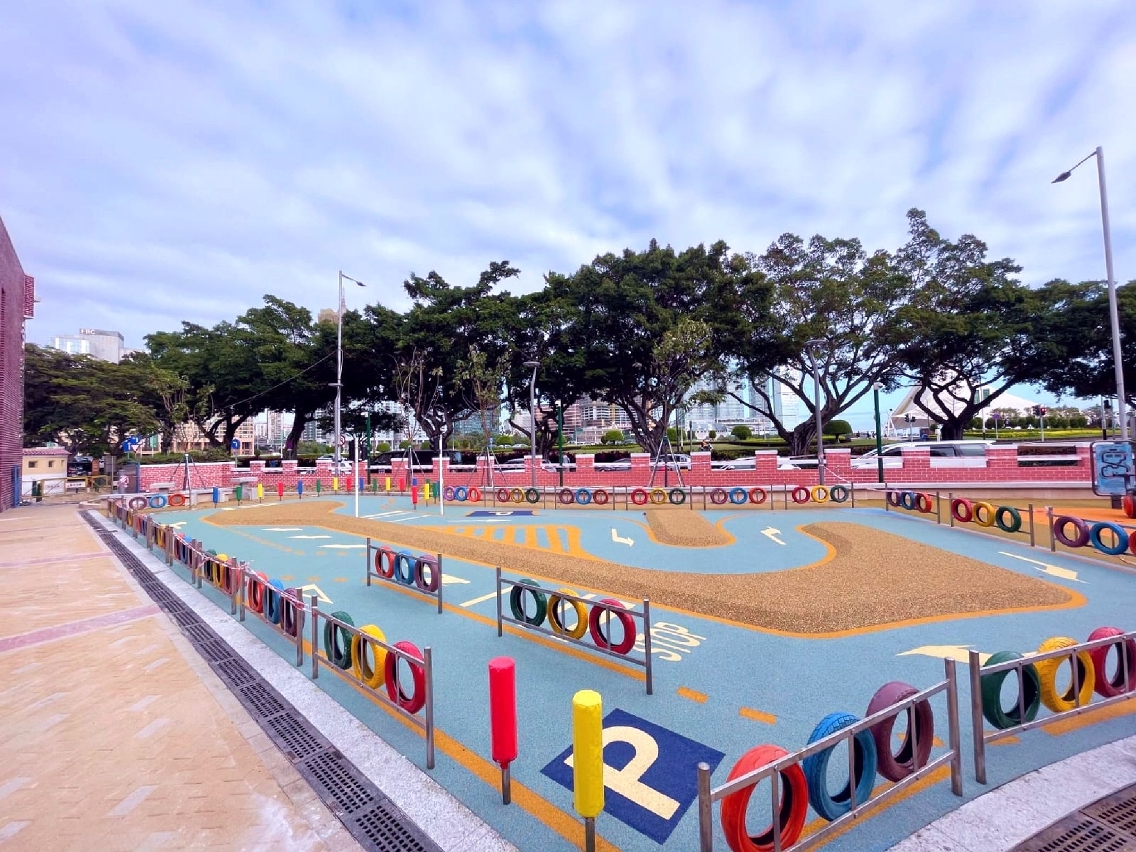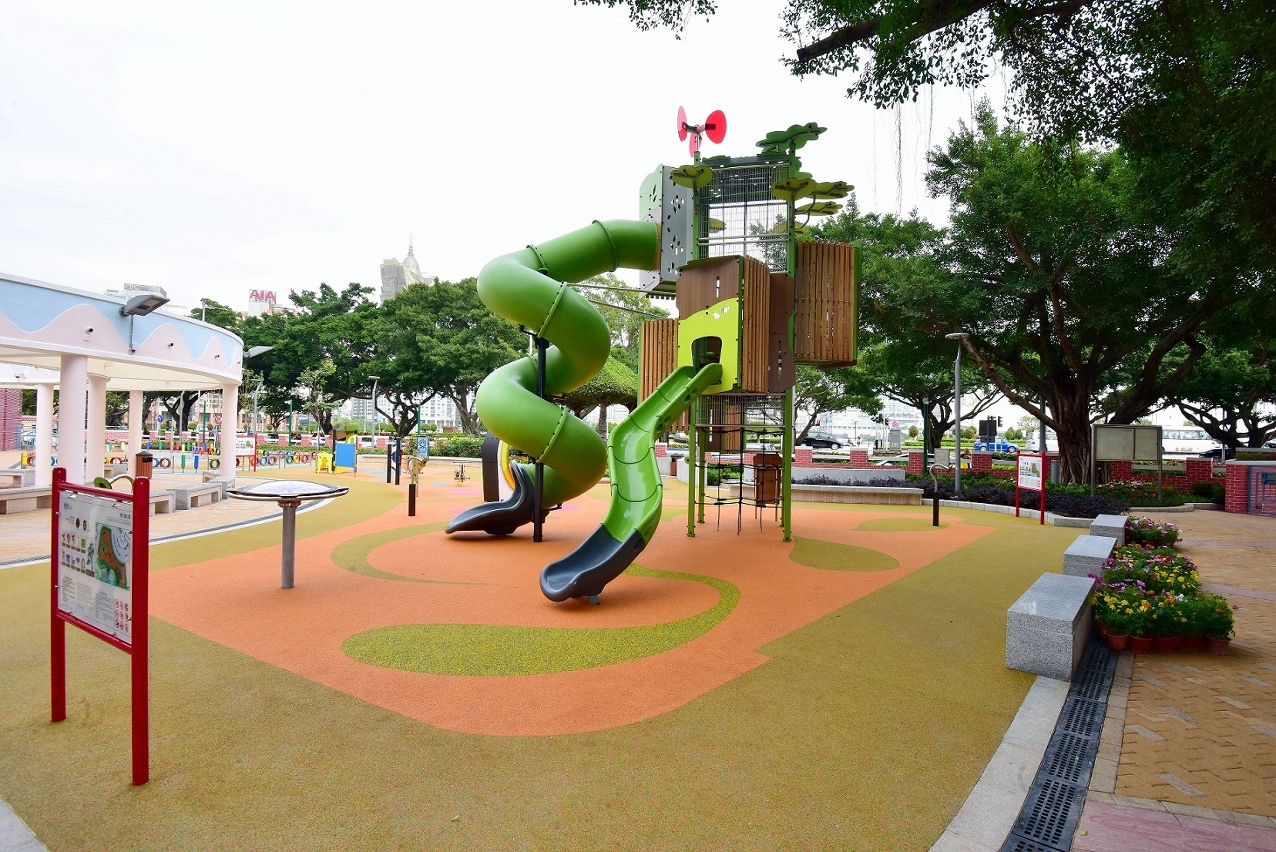 在重新佈局的兒童遊戲區內,新增綜合型兒童組合玩具以及訓練體能的遊樂設施,區分予不同年齡層兒童使用;考慮到較大年齡段兒童的身心發展,以及對戶外遊樂設施的需要,公園內增設一組適合八至十二歲兒童使用,富含攀爬元素,可鍛鍊身體協調性及平衡感,兼具適度挑戰性的大型遊具。另外,優化後的兒童電動車場區交通安全城的設施,增設了紅綠燈及行人過路燈等,讓兒童從遊戲中認識交通設施及遵守交通秩序,而重鋪的安全地墊顯示車道圖案及車道分隔島,可增加電動車遊戲的趣味性。園區內亦考慮到不同年齡使用者需要,增加座椅以供居民休憩使用,同時亦鼓勵家長在帶同子女使用公共設施時,適當地從旁給予安全指導,一同享受親子玩樂時光。