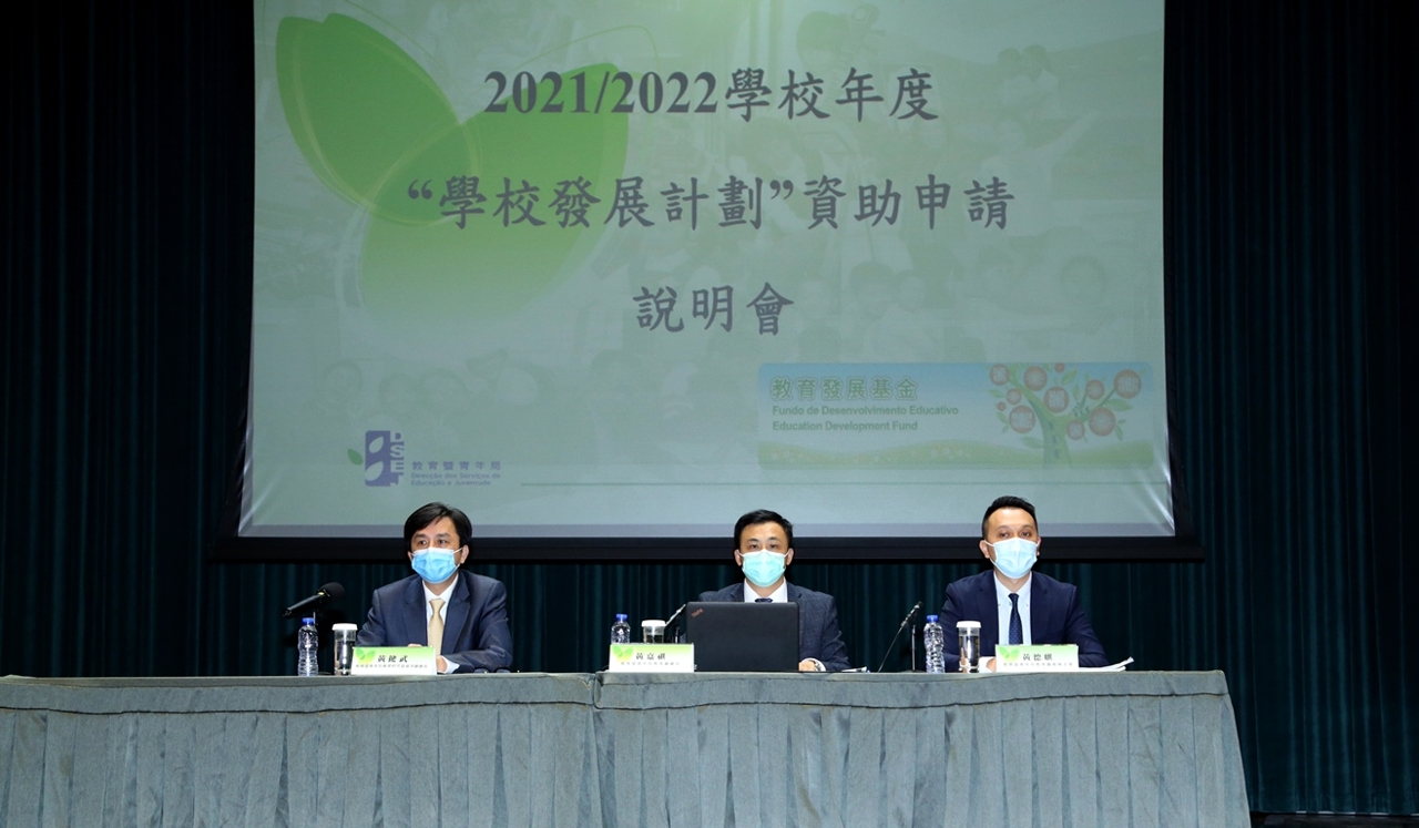 教育發展基金主席老柏生在致辭時表示,特區政府高度重視推動教育發展,培育人才。教育發展基金一直配合澳門教育長遠規劃,投入資源,推出多元資助計劃,支持學校開展各類教育計劃和活動,並表示學校需訂明清晰的工作守則,以提高學校人員的廉潔意識,強調學校有舉報涉嫌違法行為的義務。教青局教育研究暨資源廳廳長黃健武及教育廳廳長黃嘉祺分別介紹2021/2022學校年度“學校發展計劃”資助申請章程,並和與會者進行交流。
