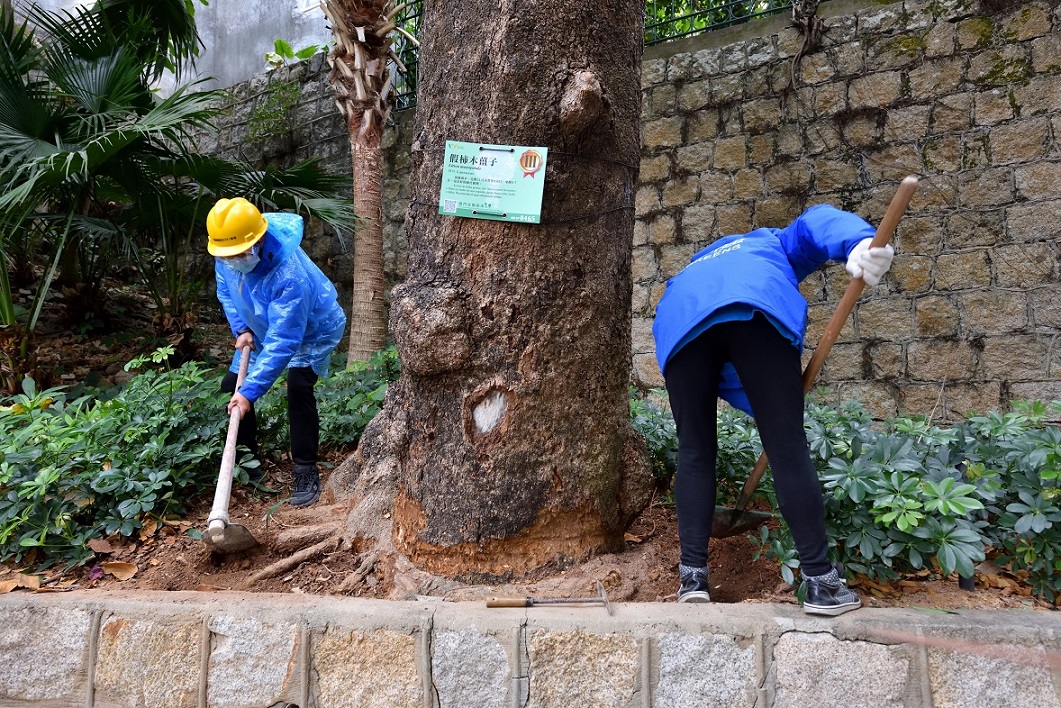 樹木管護人員將密切巡查監察上述兩株古樹的生長情況。由於兩樹均位於人流較多之處,且偏根、傾斜,基於公共安全考量,市政署計劃對古樹進行控高修剪,敬請市民諒解並留意現場情況。如有查詢可致電市民服務熱線2833 7676。