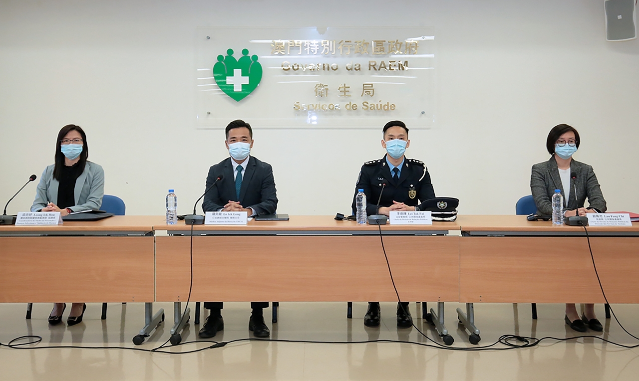 新型冠狀病毒感染應變協調中心(下稱應變協調中心)於今(25)日舉行例行記者會,仁伯爵綜合醫院羅奕龍醫務主任、治安警察局公共關係處李德輝處長、旅遊局公共關係處劉鳳池處長、疾病預防控制中心傳染病防制暨疾病監測部梁亦好協調員共同會見傳媒。