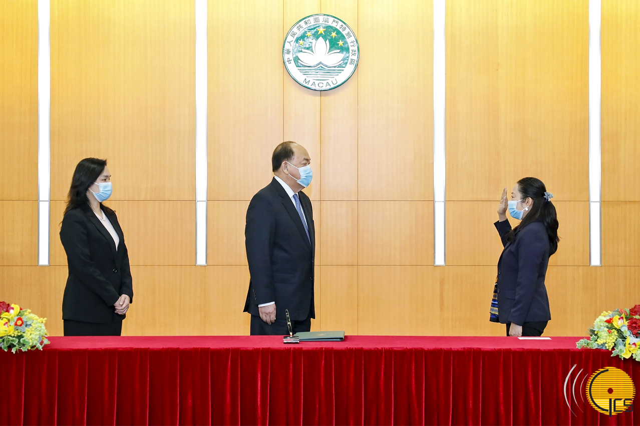 在行政長官賀一誠監誓下,政府總部事務局局長劉軍勵和副局長李月梅今(1)日下午在政府總部多功能廳宣誓就職。行政長官辦公室主任許麗芳見證。