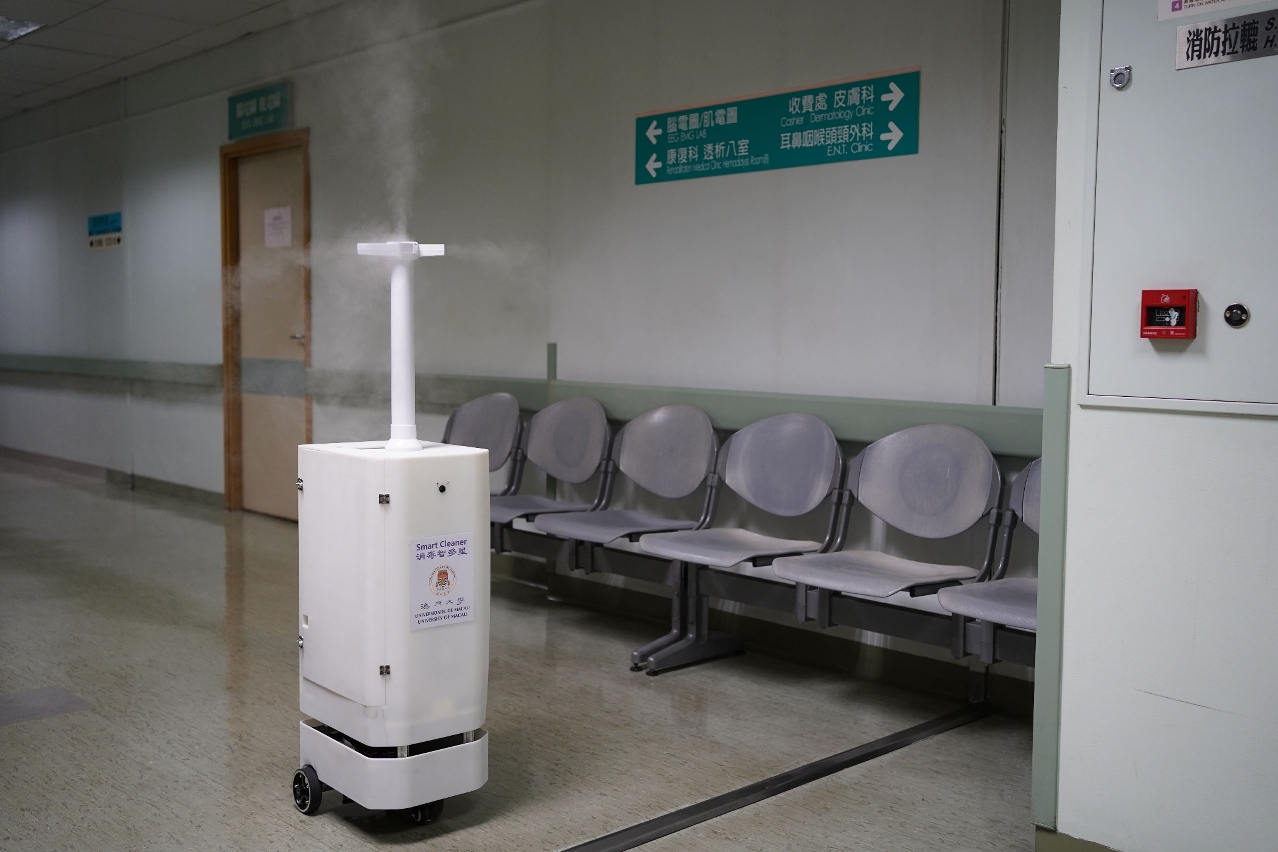 為減少前線人員的感染風險,澳門大學科技學院教授徐青松帶領研究團隊研發出低成本的消毒智能機械人——消毒智多星,替代消毒人員深入疫情嚴重的地方,實現空氣和物表消毒滅菌。目前,該機械人已應用於鏡湖醫院門診大樓、部分政府辦公場所、澳大圖書館等,用家反應甚好且希望可以訂製購買。