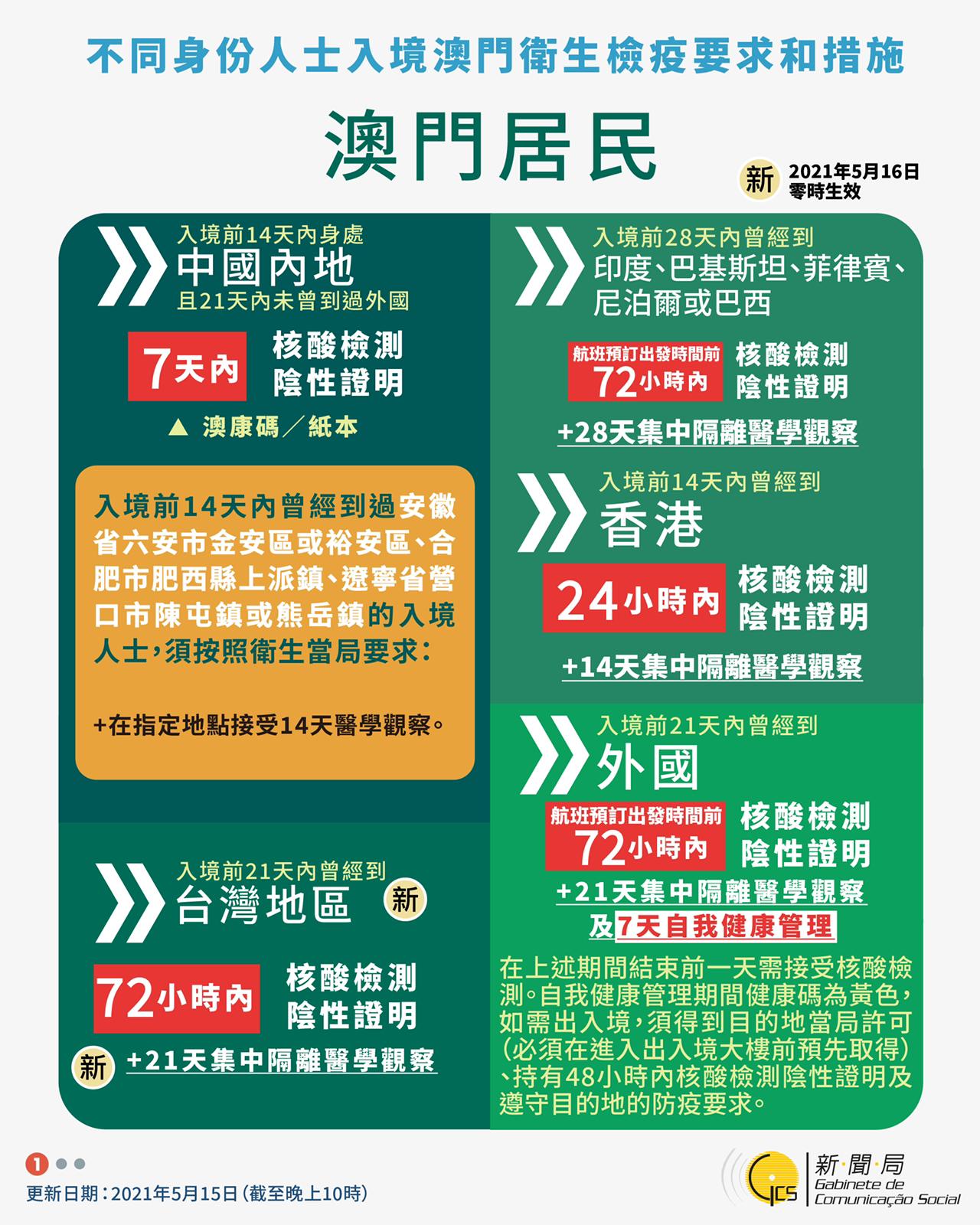 【圖文包】2021/5/16最新入境澳門衛生檢疫要求和措施