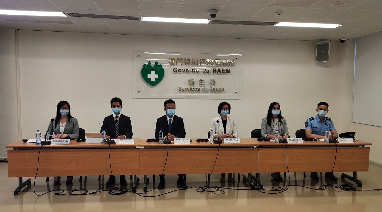 新型冠狀病毒感染應變協調中心(下稱應變協調中心)於今(24)日舉行例行記者會,衛生局羅奕龍局長、衛生局疫苗接種協調員戴華浩醫生、旅遊局傳播及對外關係廳劉鳳池廳長、教育及青年發展局學生廳蔡敏芝代廳長、治安警察局公共關係處李德輝處長、疾病預防控制中心傳染病防制暨疾病監測部梁亦好協調員共同會見傳媒。