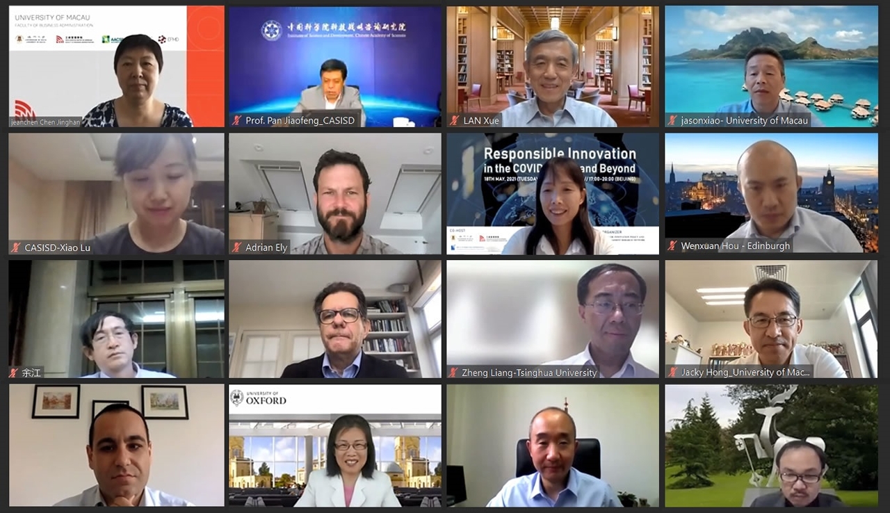 澳門大學工商管理學院與牛津大學技術與管理發展中心、清華大學中國科技政策研究院、中國科學院科技戰略諮詢研究院和中英創新政策與管理研究網絡共同舉辦“新冠疫情時代負責任的創新”國際學術論壇。多名來自國務院發展研究中心、中國科學院科技戰略諮詢研究院、清華大學、英國牛津大學、英國薩里大學、英國薩塞克斯大學、澳門大學等政府智庫及知名學府的學者通過線上會議的方式進行深入的探討和交流。論壇吸引世界各地近300人參加,反應熱烈。
