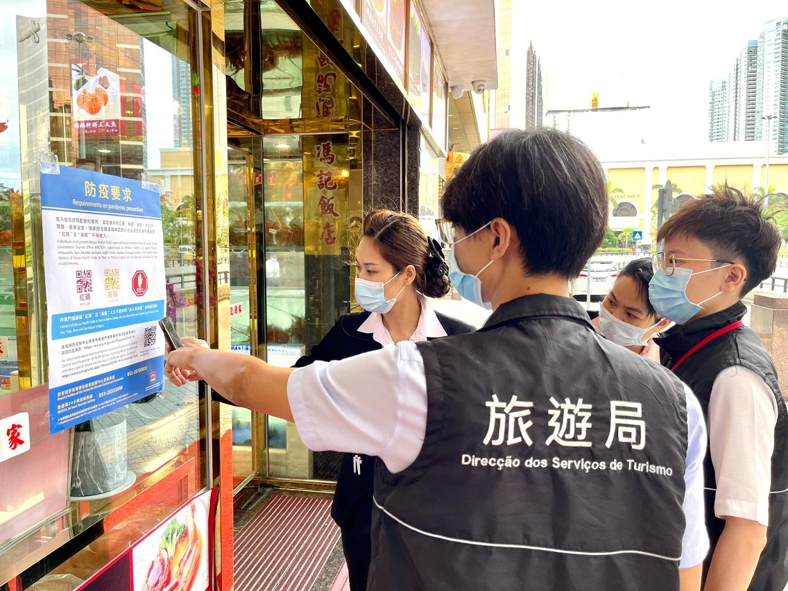 旅遊局提醒全澳酒店及公寓、綜合度假村以及局方監管的餐飲及其他場所,必須遵照衛生部門發出的建議及指引,做好防疫工作,包括佩戴口罩、在進入相關場所前量度體溫及出示“澳門健康碼”等。