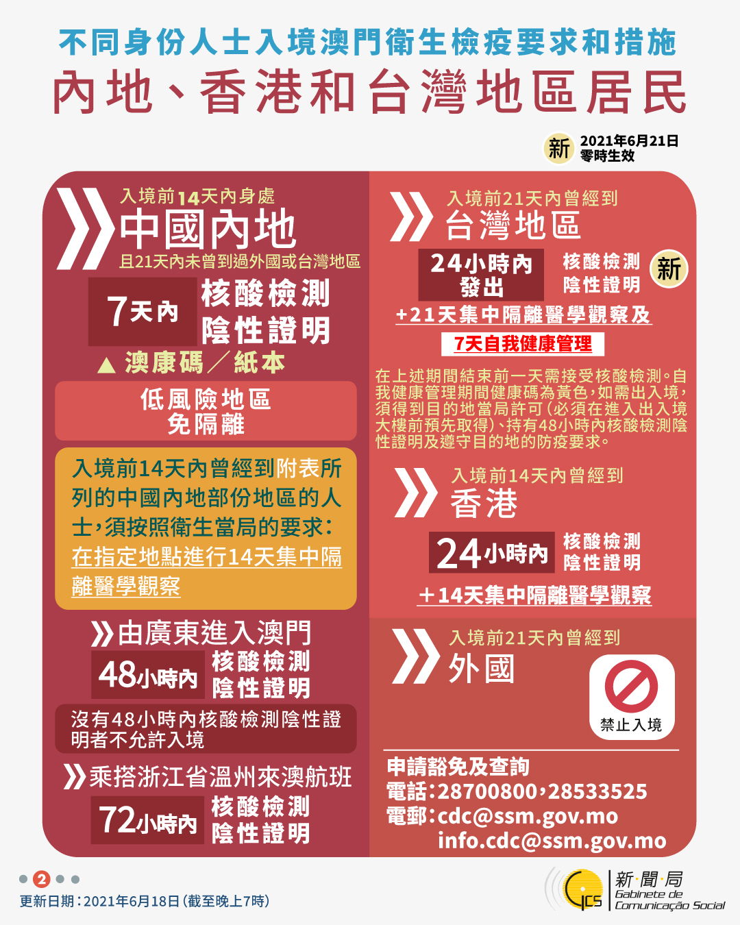 【圖文包】2021/6/18最新入境澳門衛生檢疫要求和措施