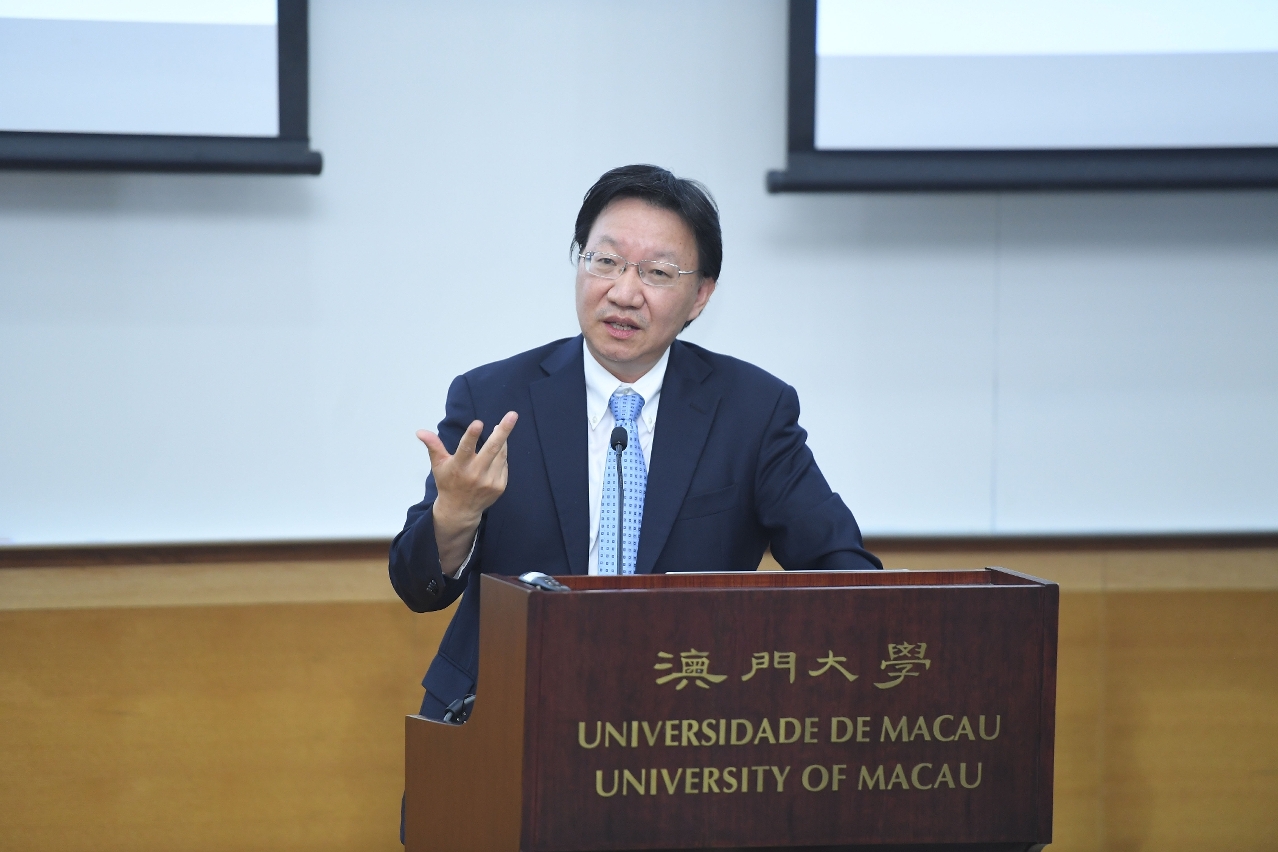 澳大校長宋永華致辭時表示,吳立新是著名海洋學家,全國人大常委,中國科學院院士,青島海洋科學與技術試點國家實驗室主任,美國地球物理學會 (AGU) 會士,發展中國家科學院院士,亞洲首位AGU地球與空間科學領導力最高獎得獎者,亞洲唯一的海洋大學副校長。2019年吳立新榮獲AGU地球與空間科學領導力最高獎,並被授予AGU會士,是該會首位獲此殊榮的亞洲科學家,也是首位成為AGU會士的中國海洋學家,足見其學術及科研成就非凡。
