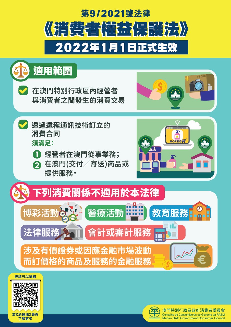 今(12)日出版的第28期《澳門特別行政區公報》第一組刊登第9/2021號法律《消費者權益保護法》,該法律於2022年1月1日起生效。