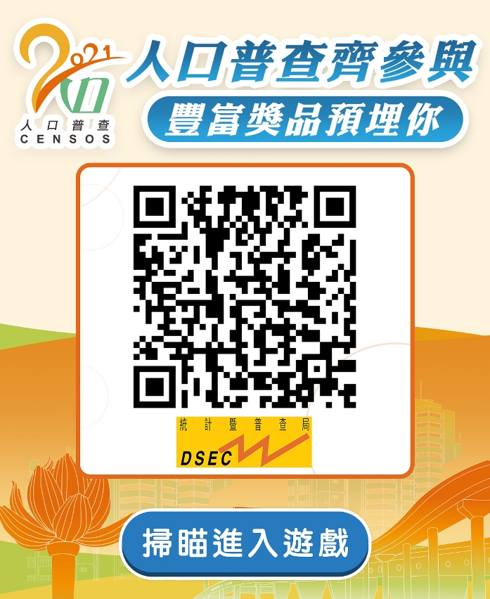 2021人口普查將於8月7日至21日進行,普查對象包括全澳所有住戶。為加深大眾對2021人口普查的認識和關注,統計暨普查局今日推出「2021人口普查齊參與」線上有獎遊戲,冀透過遊戲,讓大眾進一步掌握人口普查資訊,從而鼓勵市民積極配合人口普查工作,提供準確資料。遊戲將於8月5日結束。