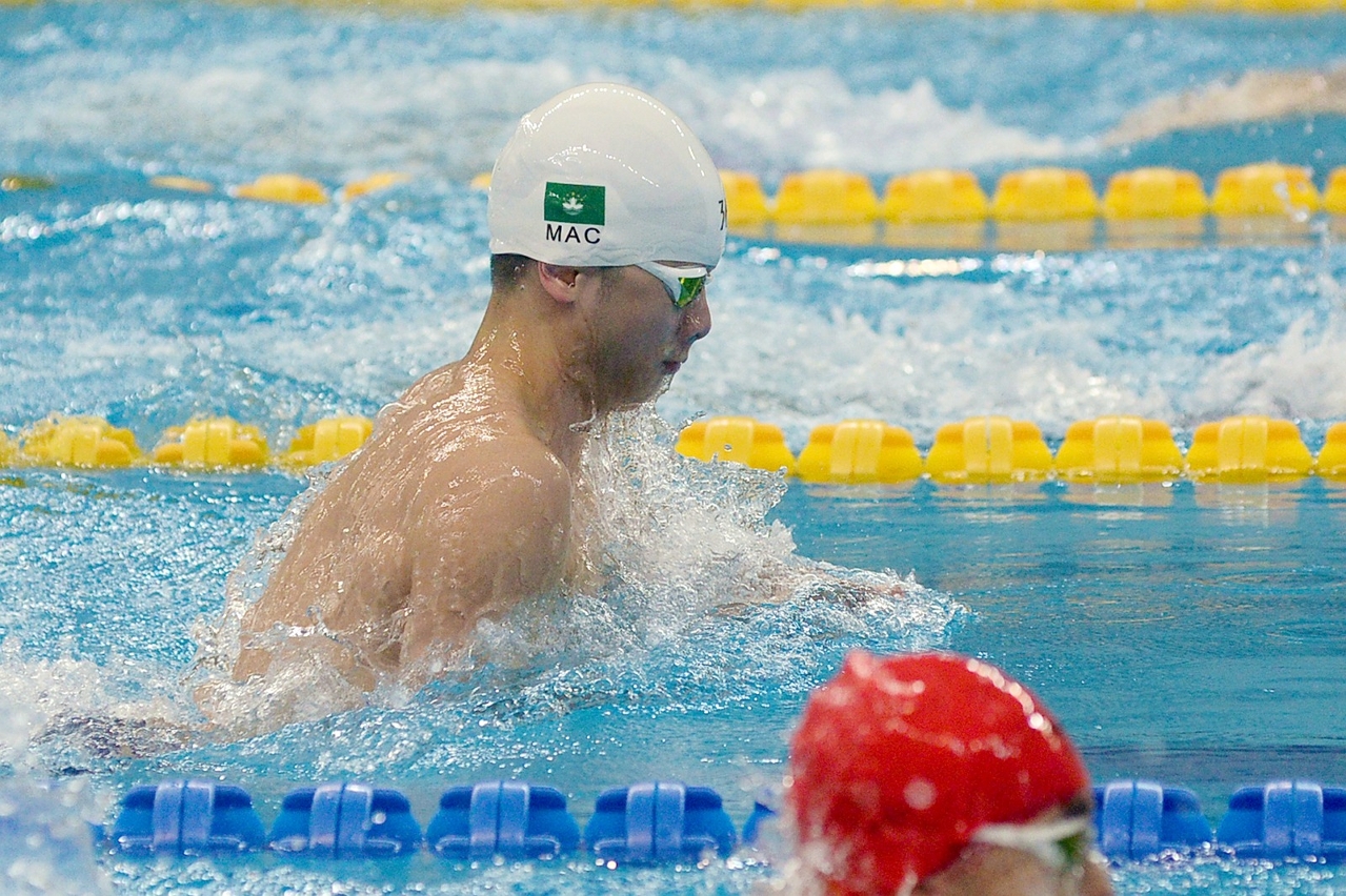現時擁有6項長池和6項短池澳門游泳紀錄的澳大教育學院研究生周文顥,先在大學男甲100蛙以今年個人的最快時間1分02秒73勇奪金牌,成功衛冕。之後他在50蛙游出28秒48,增添一面銀牌。周文顥表示,這是疫情後的第一個重要賽事,覺得自己表現尚好。他感謝澳大的支持,讓他從本科到碩士一直進步。「我在本科時曾獲頒在讀學生運動員獎學金及年度最佳運動員獎項。目前正跟孔兆偉教授做研究,對運動科學認識了很多,也令我在游泳上有了新的啟發。」