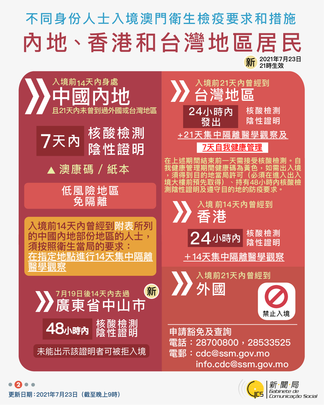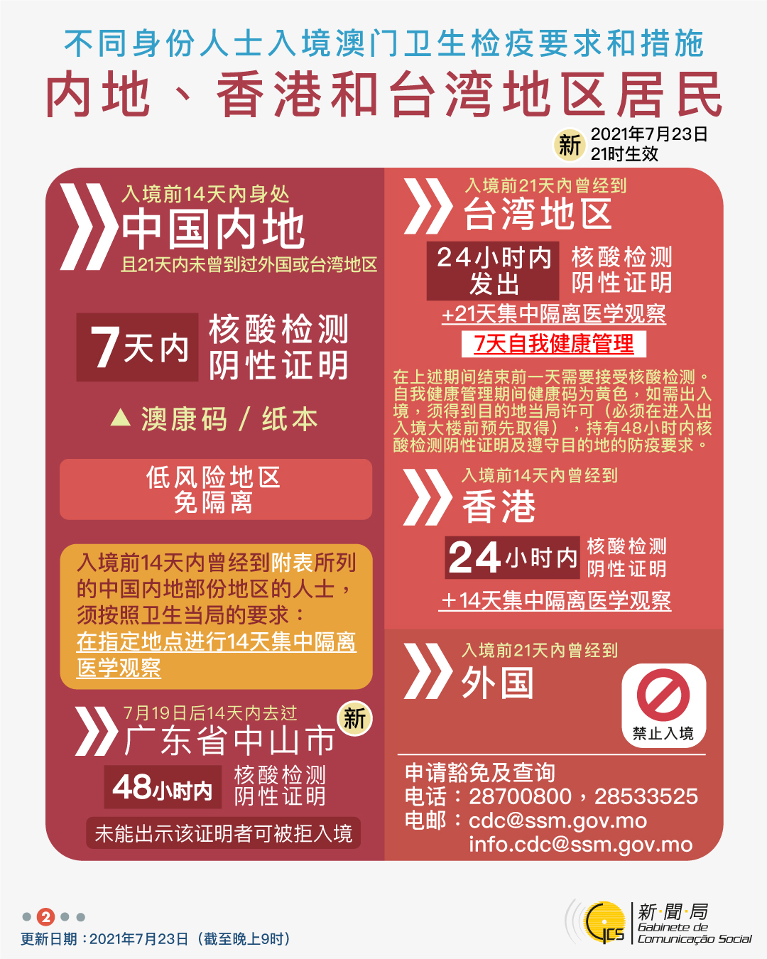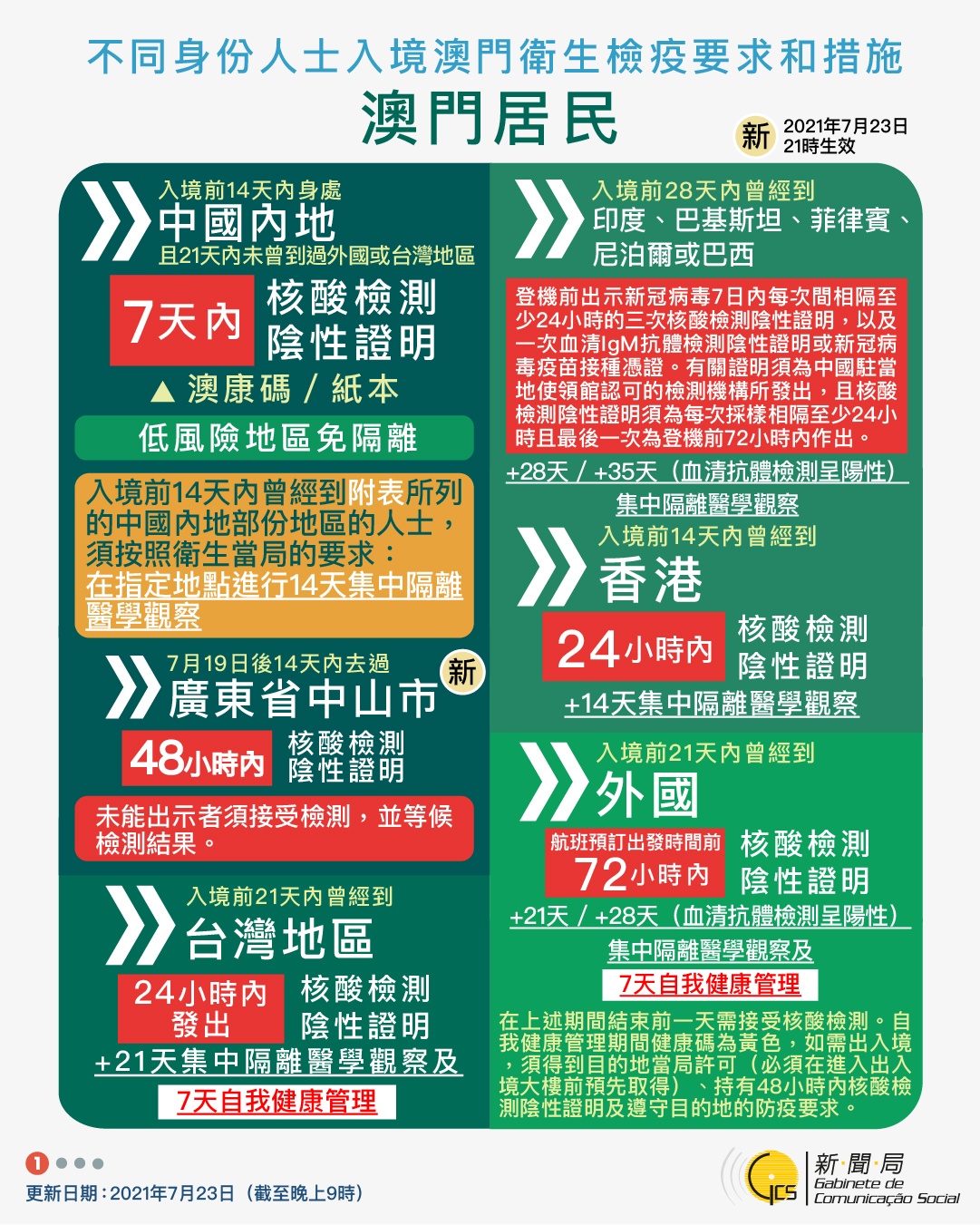【圖文包】2021/7/23最新入境澳門衛生檢疫要求和措施
