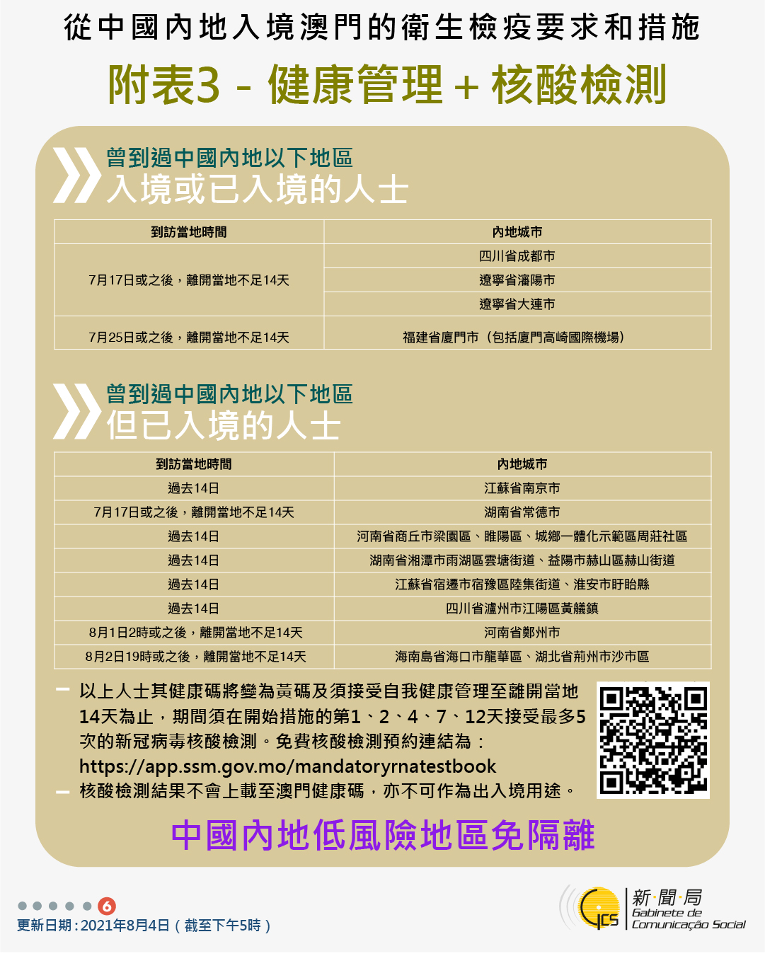 【圖文包】2021/8/4最新入境澳門衛生檢疫要求和措施