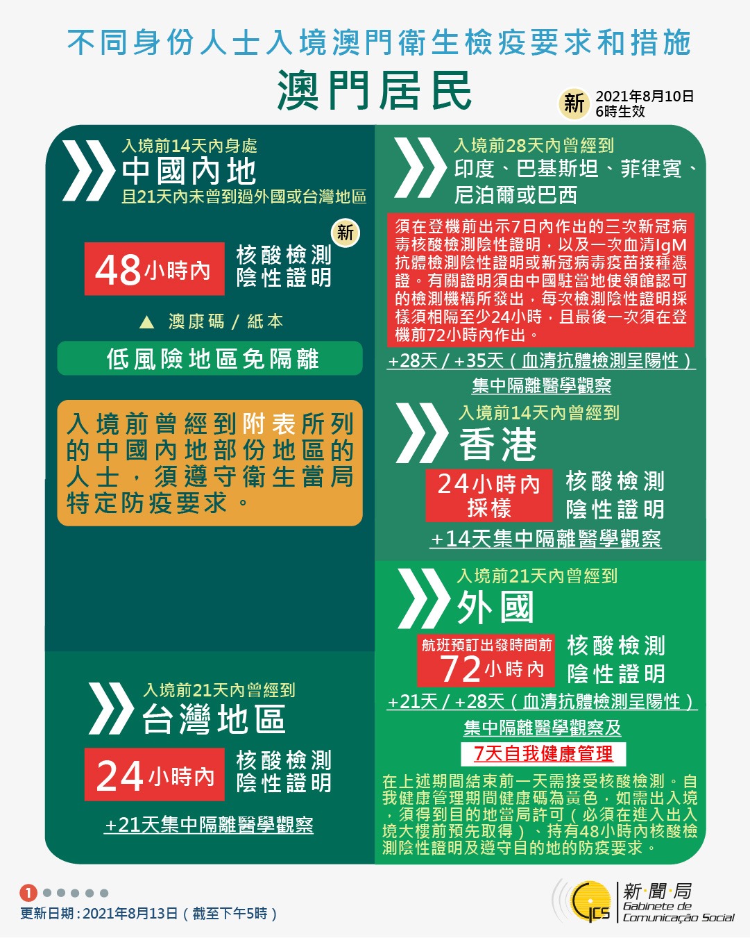 【圖文包】2021/08/13最新入境澳門衛生檢疫要求和措施