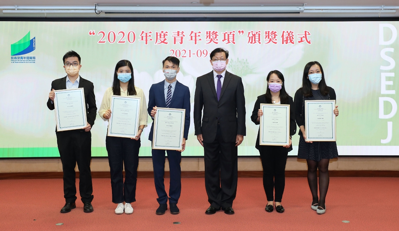 青年事務委員會2021年第三次全體會議於9月14日在教育及青年發展局一樓仲尼堂舉行,會議由青年事務委員會副主席、教青局局長老柏生主持。老柏生首先頒發“2020年度青年獎項”,今年共頒發“青年活動獎”及“公民教育獎”兩個獎項。“青年活動獎”由澳門文物大使協會、澳門青年傳媒協會及濠江青年商會獲得,而“公民教育獎”則由汎澳青年商會及濠江青年商會獲得。