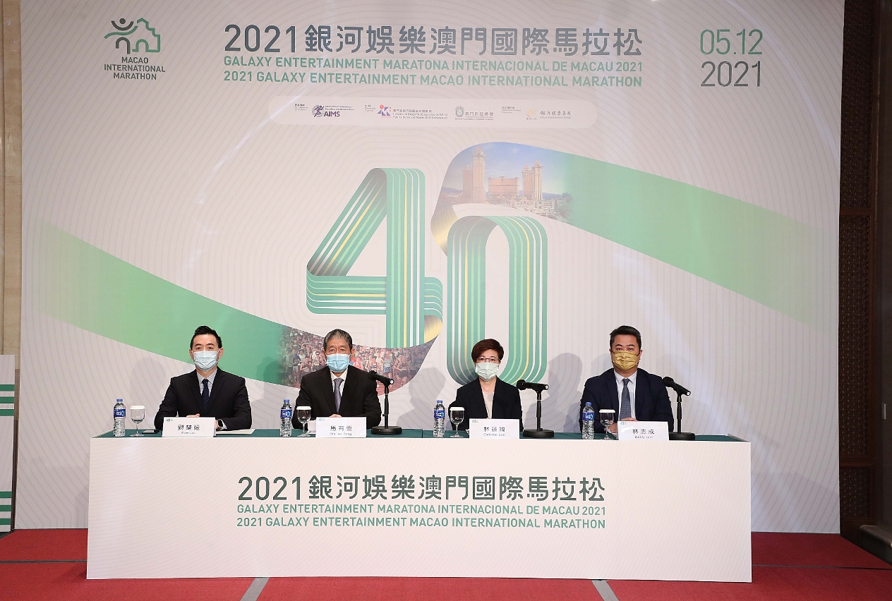 由體育局及澳門田徑總會主辦,銀河娛樂集團冠名贊助的「2021銀河娛樂澳門國際馬拉松」將於本年12月5日(周日)舉行,為了慶祝賽事舉行至第40屆,將會舉行多項線上線下活動,讓市民、旅客及參加者以不同的方式一同參與本屆馬拉松,一起感受「2021銀河娛樂澳門國際馬拉松」的歡樂熱鬧氣氛。