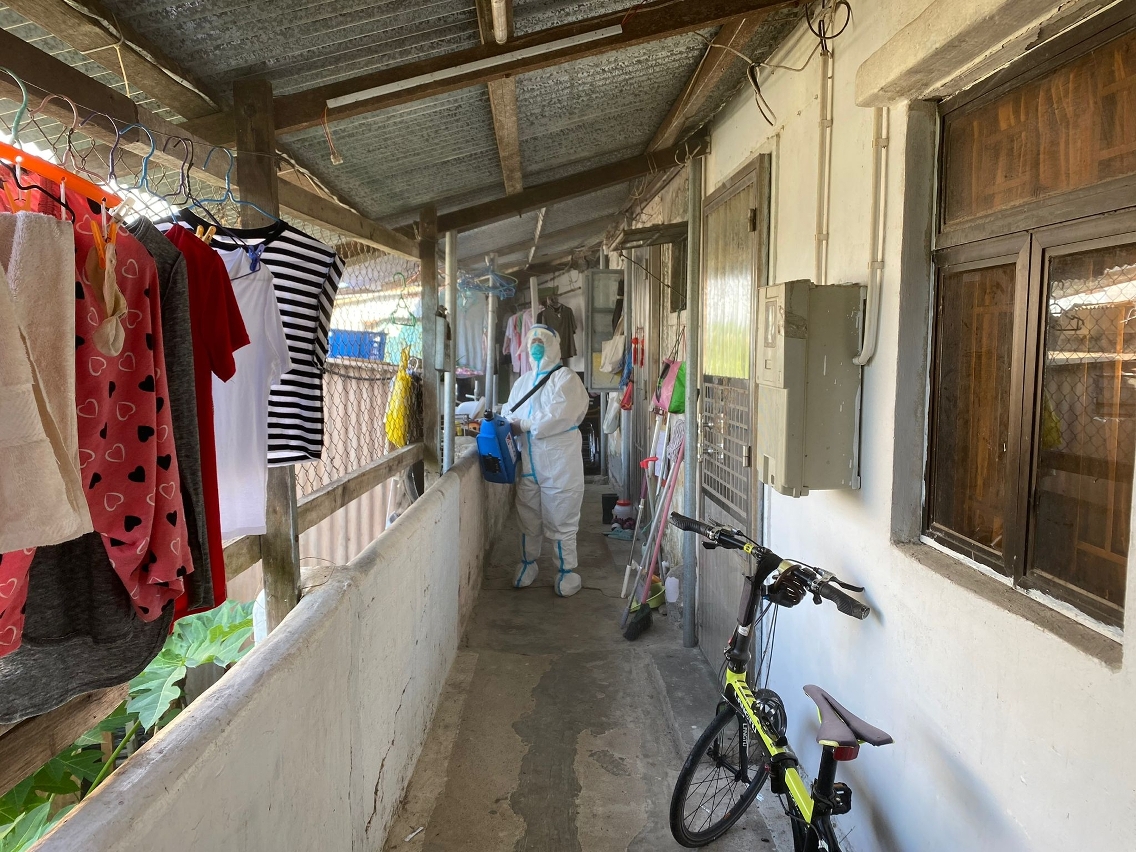 市政署對第74例確診病例之居所周邊加強清潔消毒
