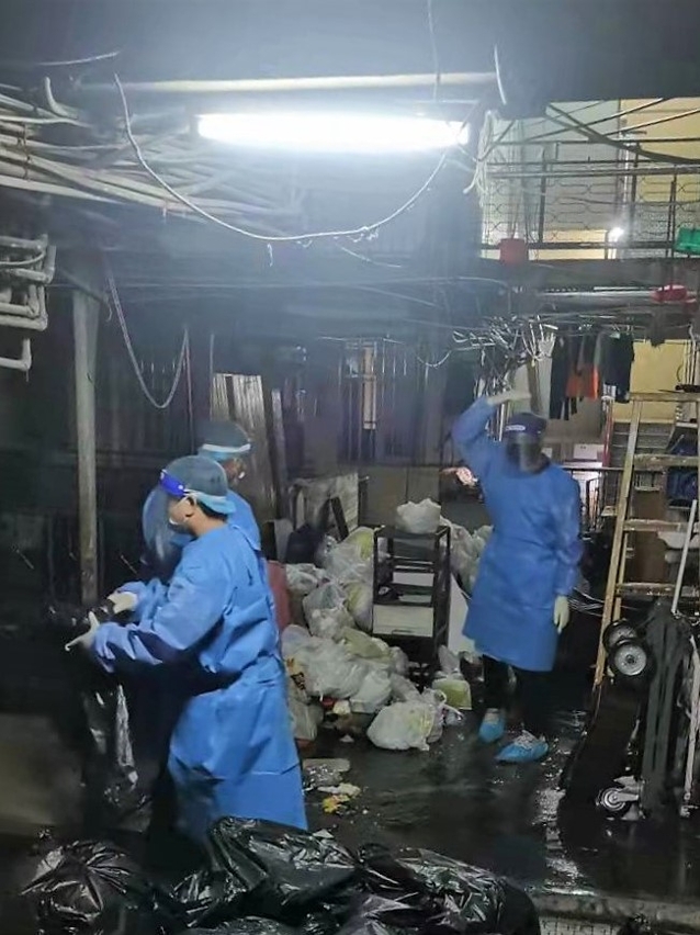 維生及支援小組於區域圍封當天已向新美安大廈居民派發指引,要求住戶將生活垃圾妥善包紮以確保不滲漏,於每晚六時至八時前放置於單位門前。市政署每晚派出至少七名衛生人員於九時後上門收集生活垃圾,並對梯間走廊進行清潔,平均每晚清理超過一百袋大垃圾袋,可裝滿十個一千一百公升的大型垃圾桶,平均需要至少五小時。惟近日發現有部份住戶不按指引依時棄置垃圾,亦於大廈天井平台等公共部份棄置垃圾及雜物,當中包括大型廢舊家具、床舖、煮食爐具、裝修廢棄物以及未有妥善包好的廚餘及口罩等,嚴重損害環境衛生,加重清運負擔。