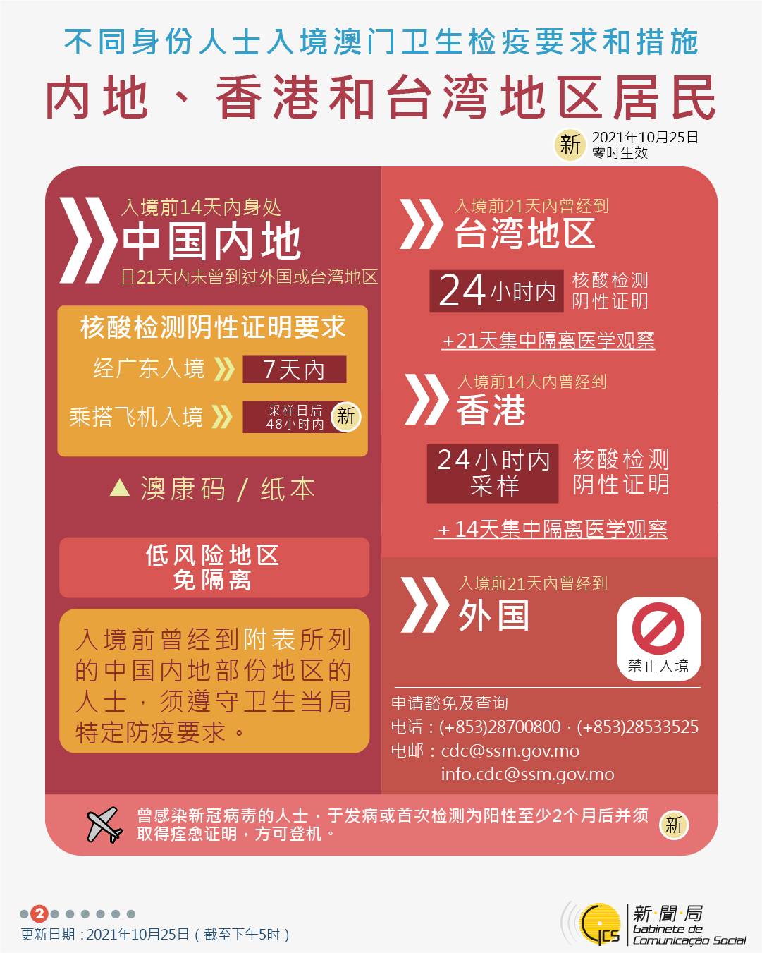 【圖文包】2021/11/4最新入境澳門衛生檢疫要求和措施