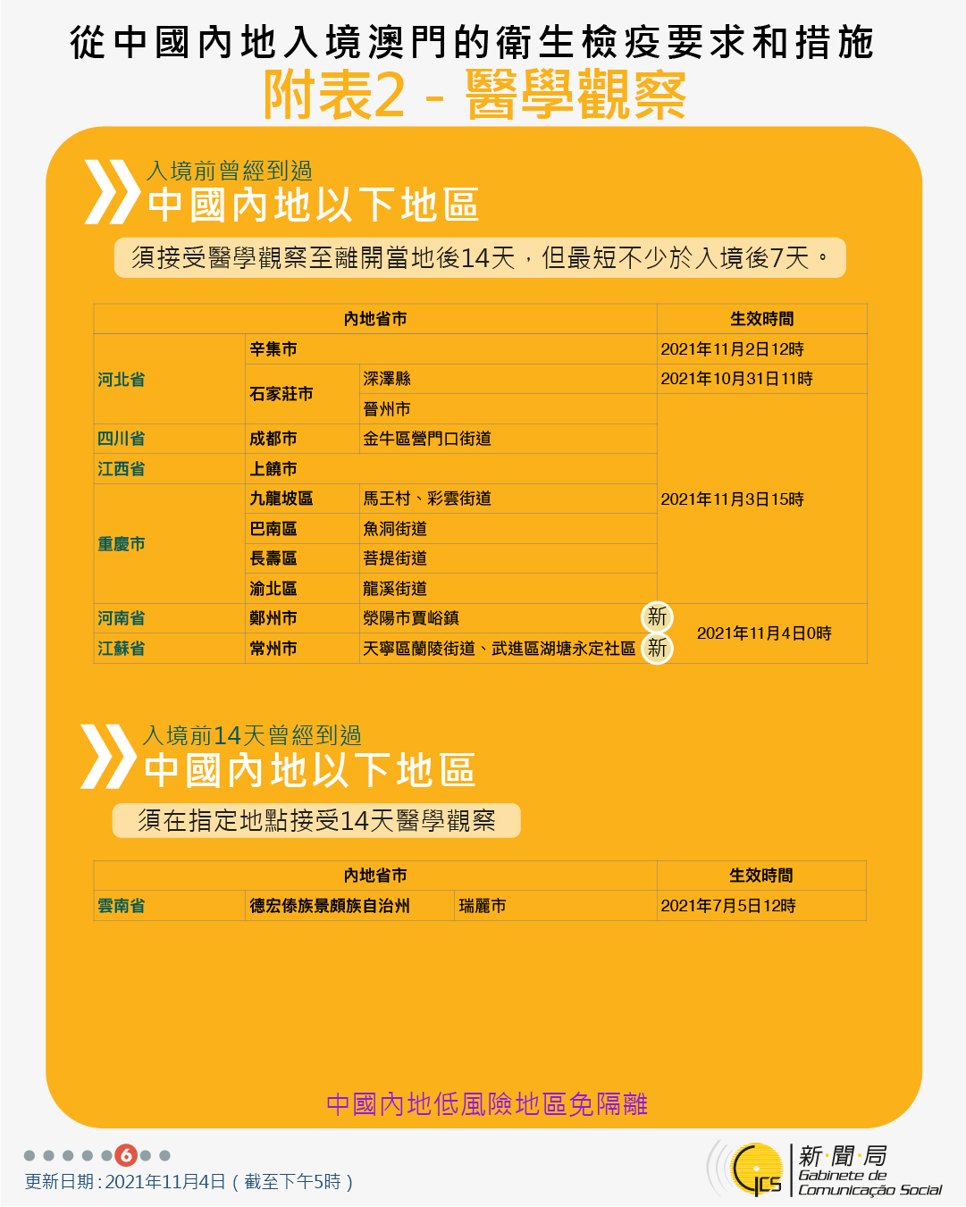11月4日晚9時起曾到四川省和重慶市相關區域人士的防疫措施