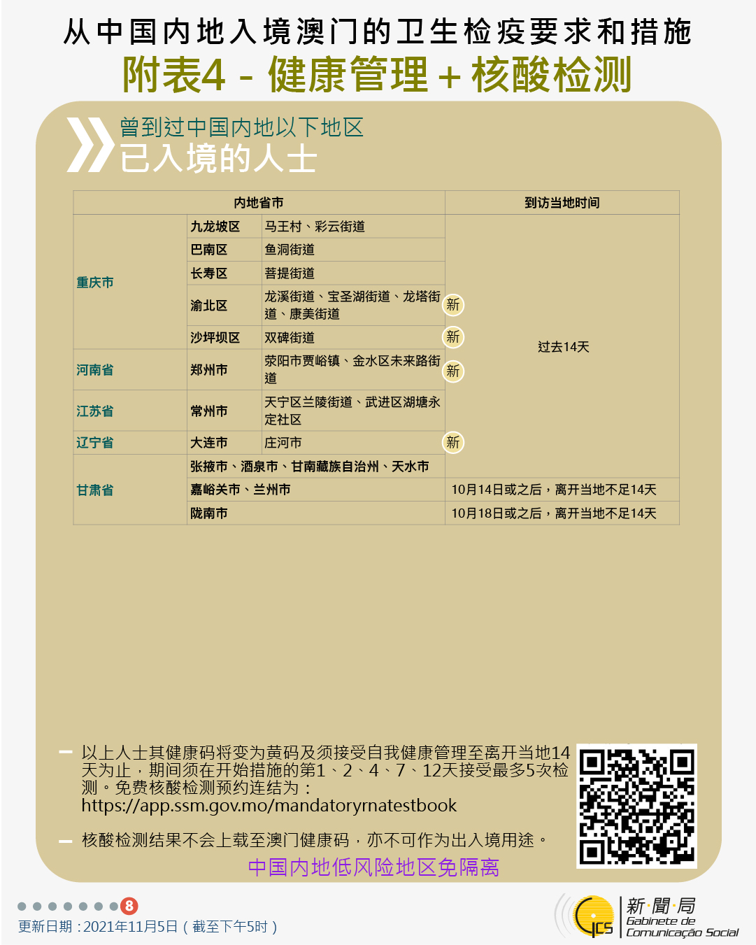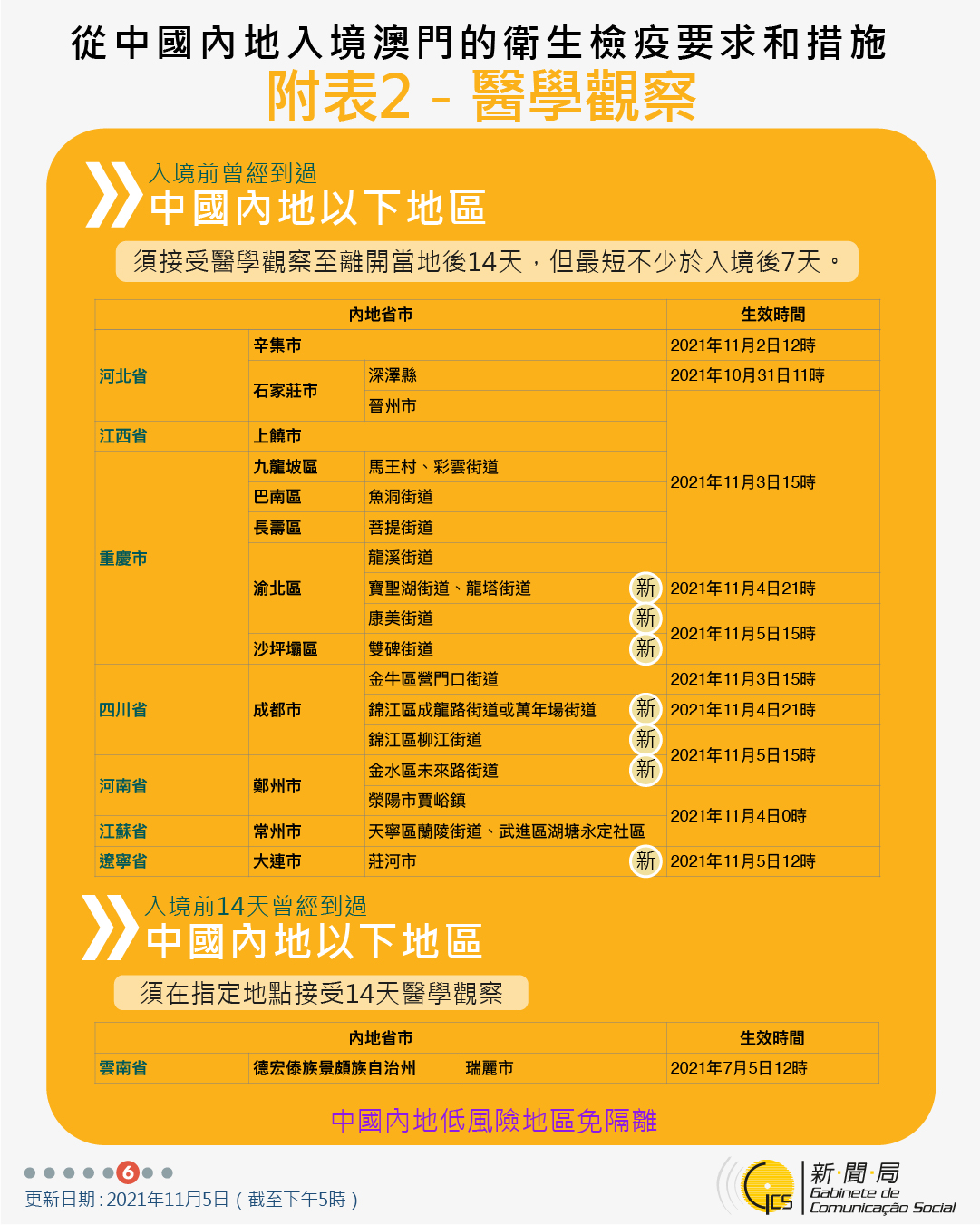 【圖文包】2021/11/5最新入境澳門衛生檢疫要求和措施